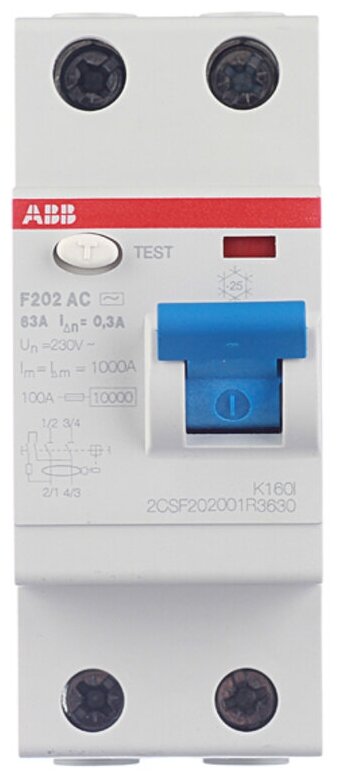 F202 AC 63/300 Блок утечки тока 2-полюсный, 63A, 300mA, тип АC (УЗО) ABB, 2CSF202001R3630 интересное: