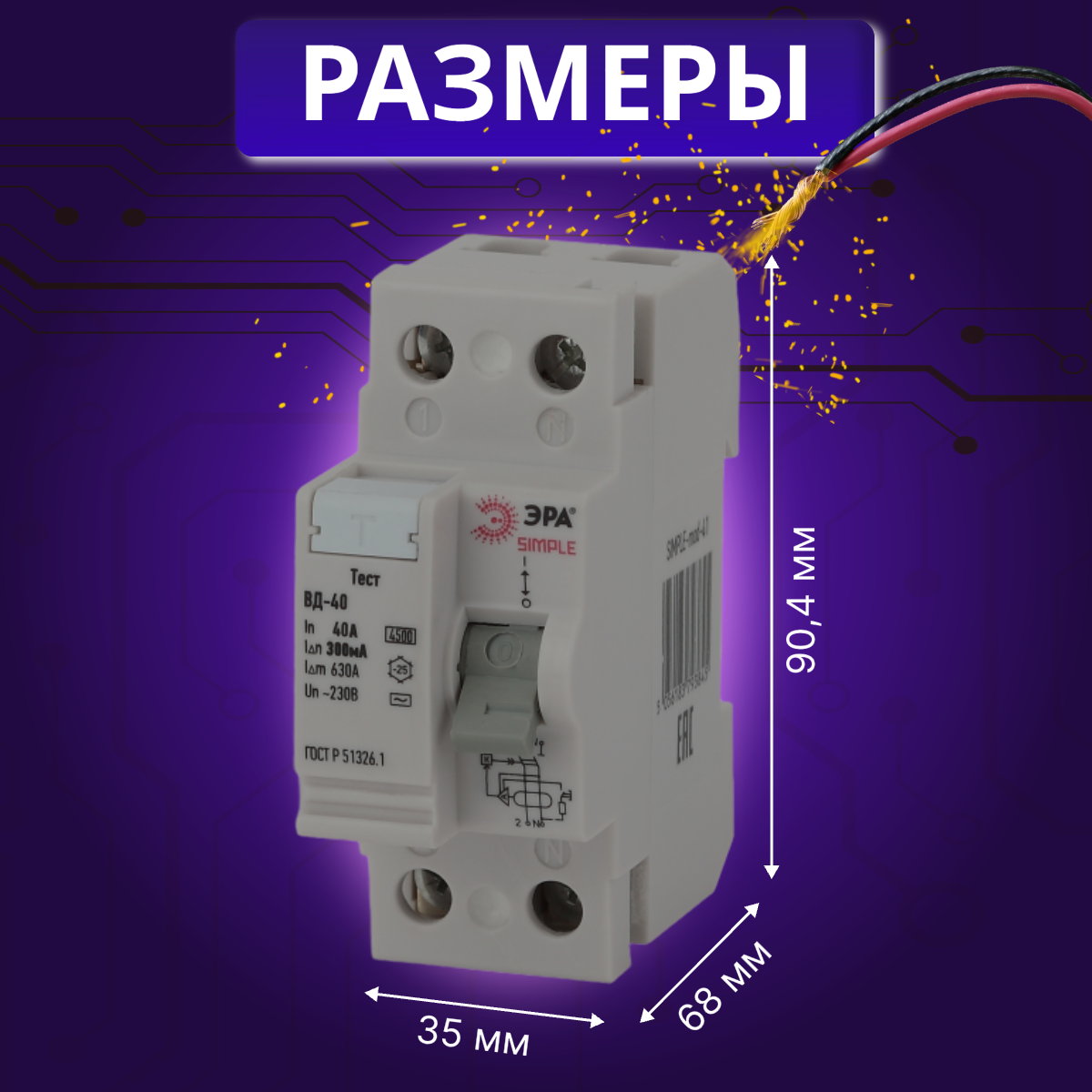 Выключатель диф тока УЗО 2P (2П) 40А 300 мА АС электронное SIMPLE-mod-51 ВД-40 Б0039271 Эра 1шт интересное: