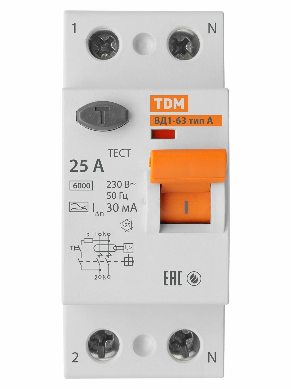 Купить УЗО ВД1-63 2Р 25А 30мА тип А TDM