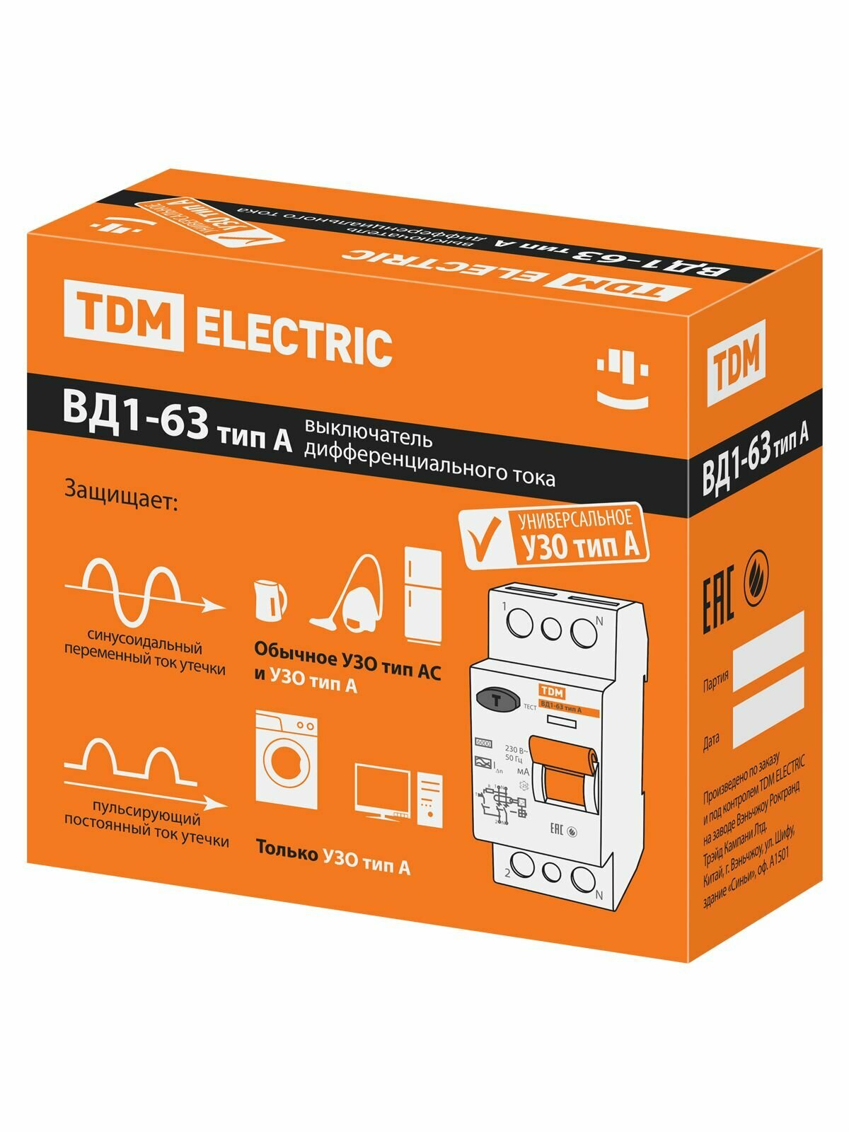 УЗО TDM ELECTRIC 100мА тип АС ВД1-63
