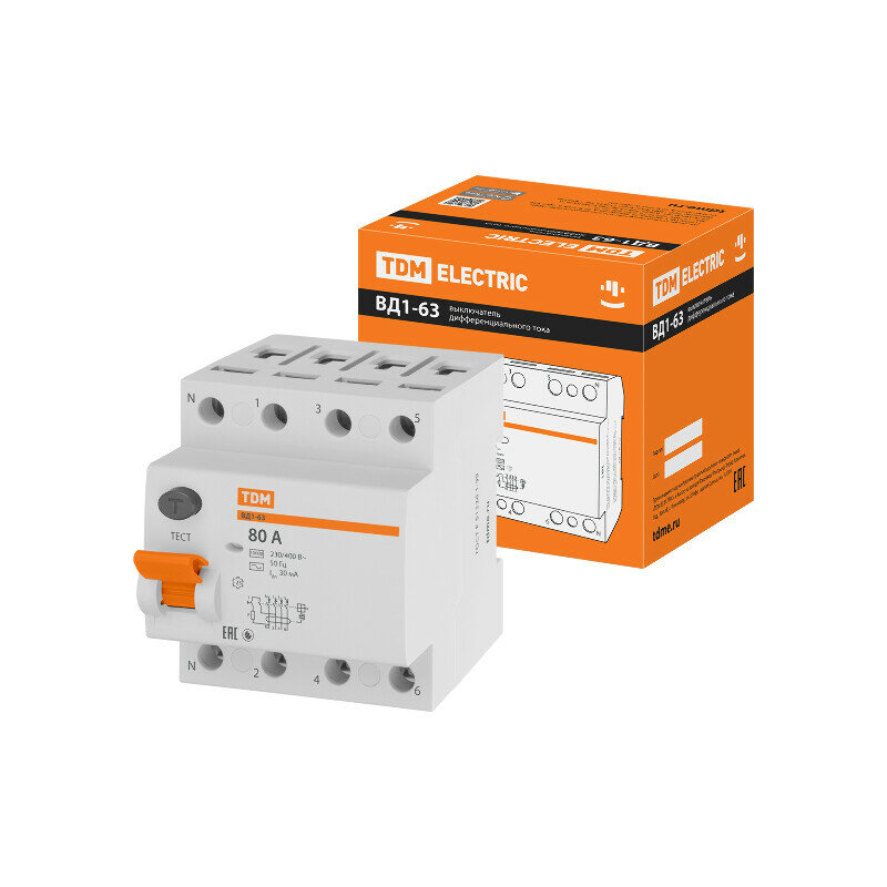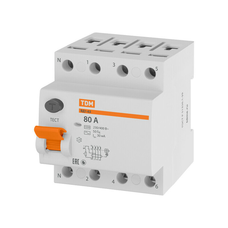 Устройство защитного отключения TDM ВД1-63 4Р, 80А, 30мА интересное: