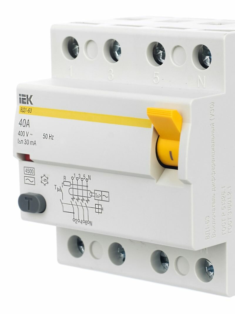 Устройство защитного отключения УЗО 4-пол. 40А 30мA тип АC серия ВД1-63 MDV10-4-040-030 IEK (ИЭК) интересное: