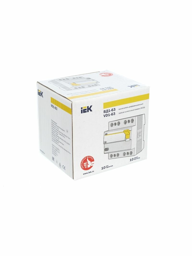 Устройство защитного отключения УЗО 4-пол. 63А 30мA тип АC серия ВД1-63 MDV10-4-063-030 IEK (ИЭК)