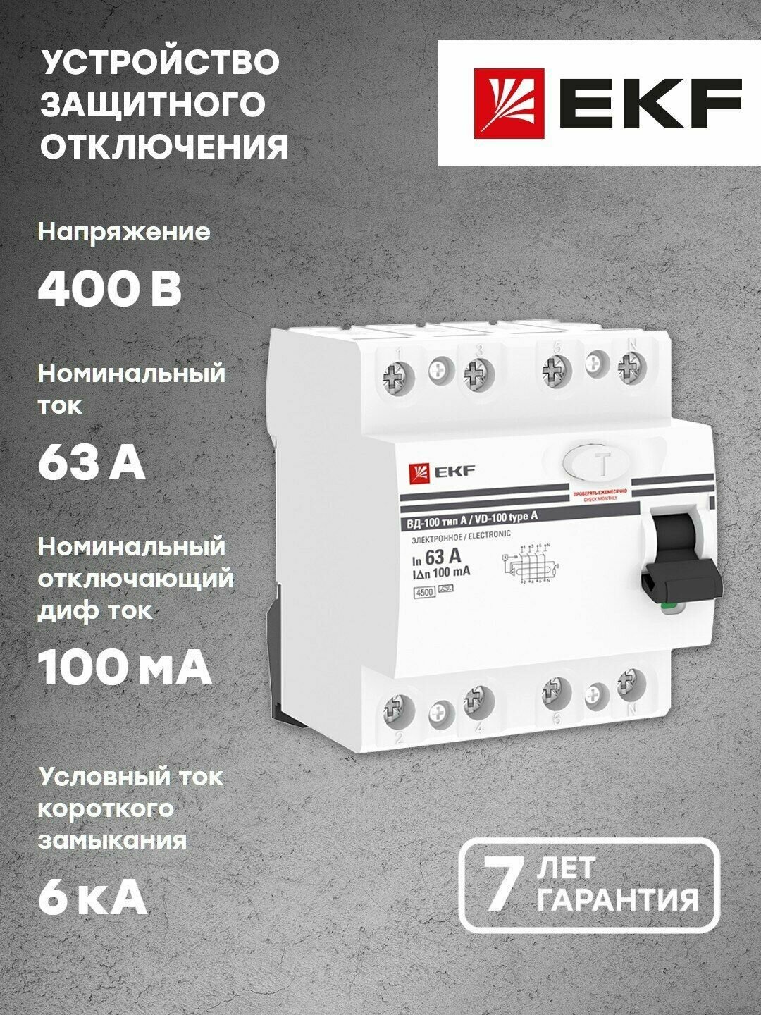 Устройство Защитного Отключения ВД-100 4P 63А-100мА (электр, тип А) EKF PROxima интересное: