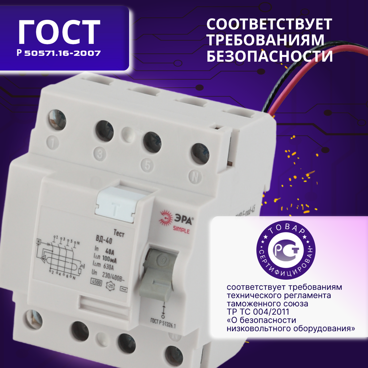 Выключатель диф тока УЗО 4P (4П) 40А 100 мА АС электронное SIMPLE-mod-49 ВД-40 Б0039269 Эра 1шт интересное: