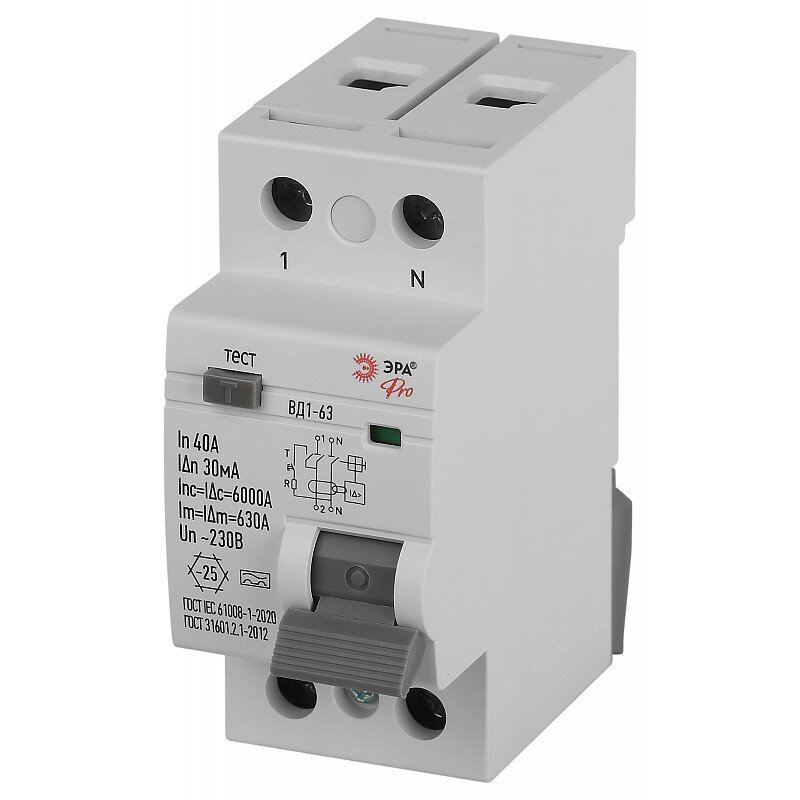 Купить VD2EM40A30 УЗО ЭРА PRO VD2EM40A30 ВД1-63 2P 40А 30мА тип А электромеханическое, цена за 1 шт