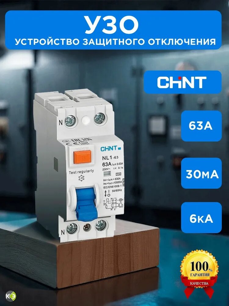 УЗО 63А 2П 30мА 6кА тип АС Чинт Устройство защитного отключения CHINT интересное: