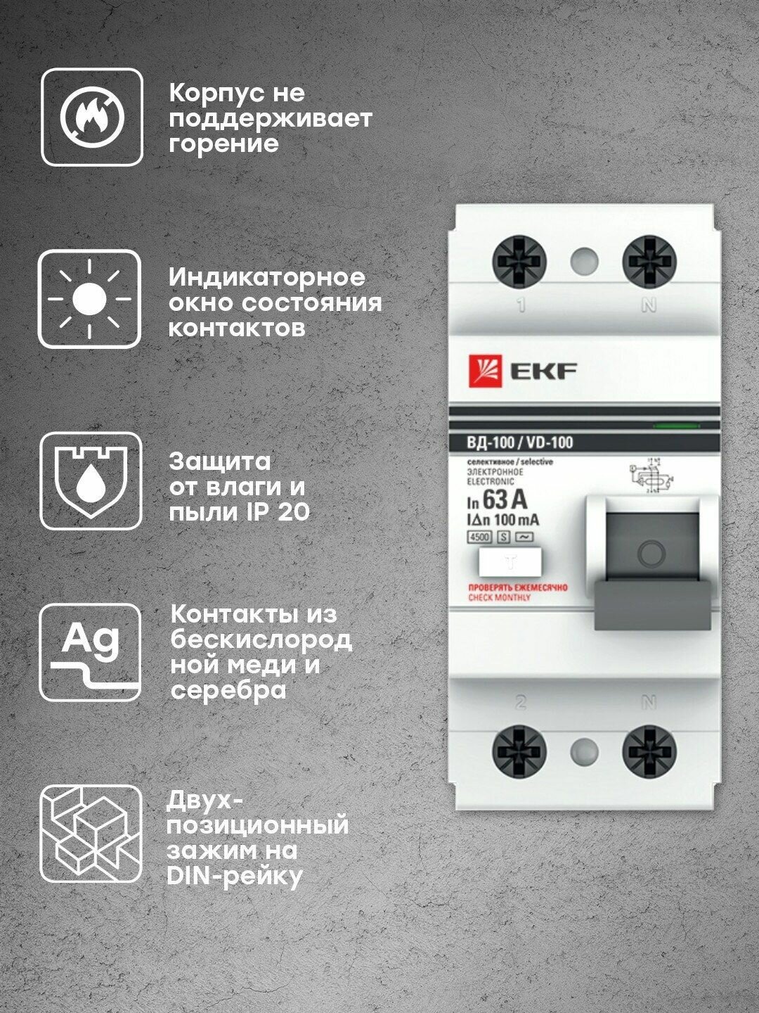 Устройство защитного отключения селективное 2P 63А-100мА (электромеханическое) EKF PROxima интересное: