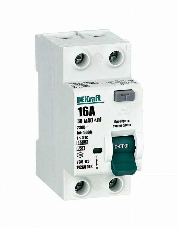 Устройство защитного отключения УЗО-03new 14260DEK (тип А) 16А-30мА 230В 1P+N 6,0кА DEKraft интересное: