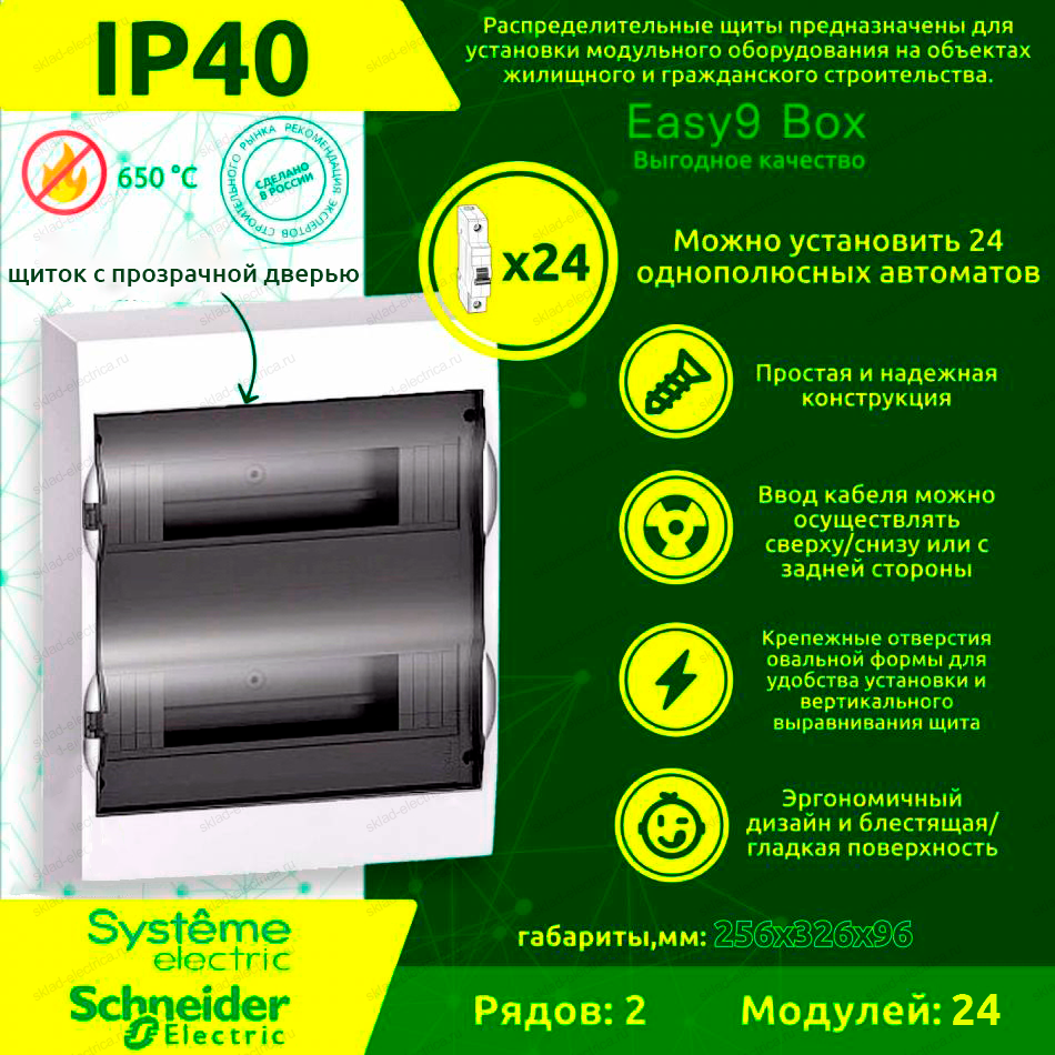 Распределительный шкаф Schneider Electric Easy9, 24 мод, IP40, навесной, пластик, прозрачная дверь, с клеммами интересное: