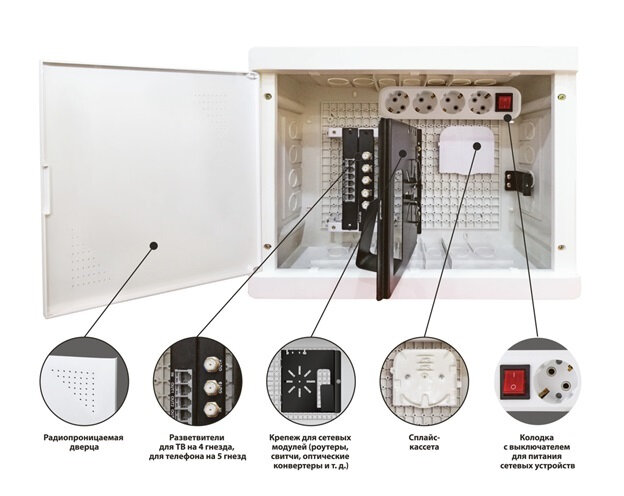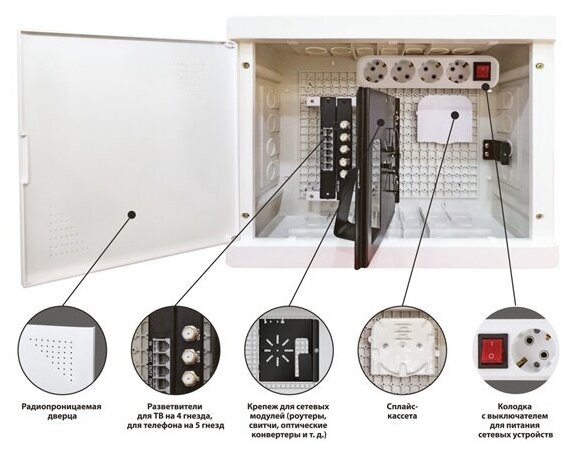Бокс мультимедийный БМ-ВП-01, 420х320х150, ТВх4, ТФх5, 2 сетевых мод, колодка питания TDM интересное: