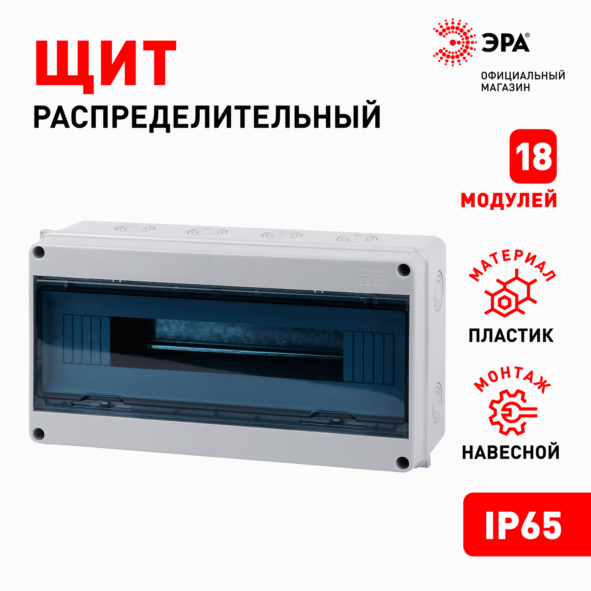 Щит распределительный навесной ЭРА КМПн-18 пластиковый уличный на 18 модулей с дверцей IP65, 363х198х100 мм интересное: