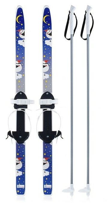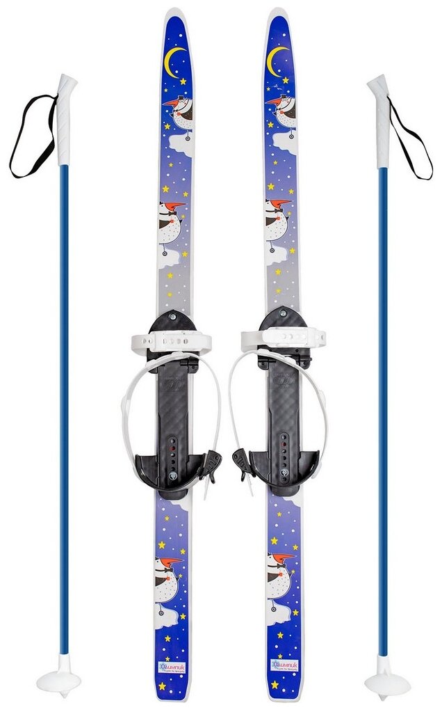 Детский лыжный комплект Быстрики Пингвины / Лыжи пластиковые детские 90 см с креплениями и палками 90 см