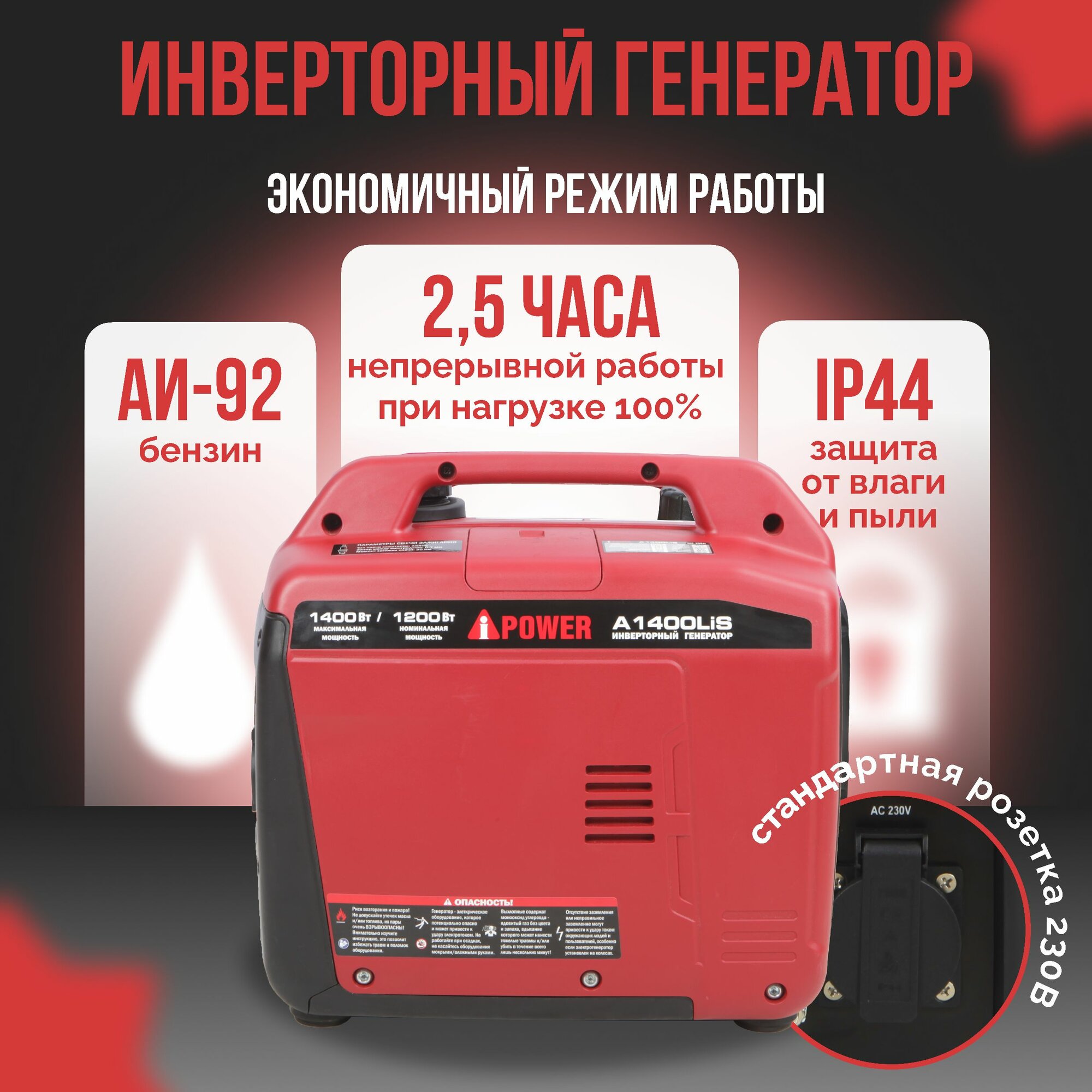Генератор бензиновый инверторный A-iPower A1400LiS (1.4 кВт) бензо, ручной, мини, электрический интересное: