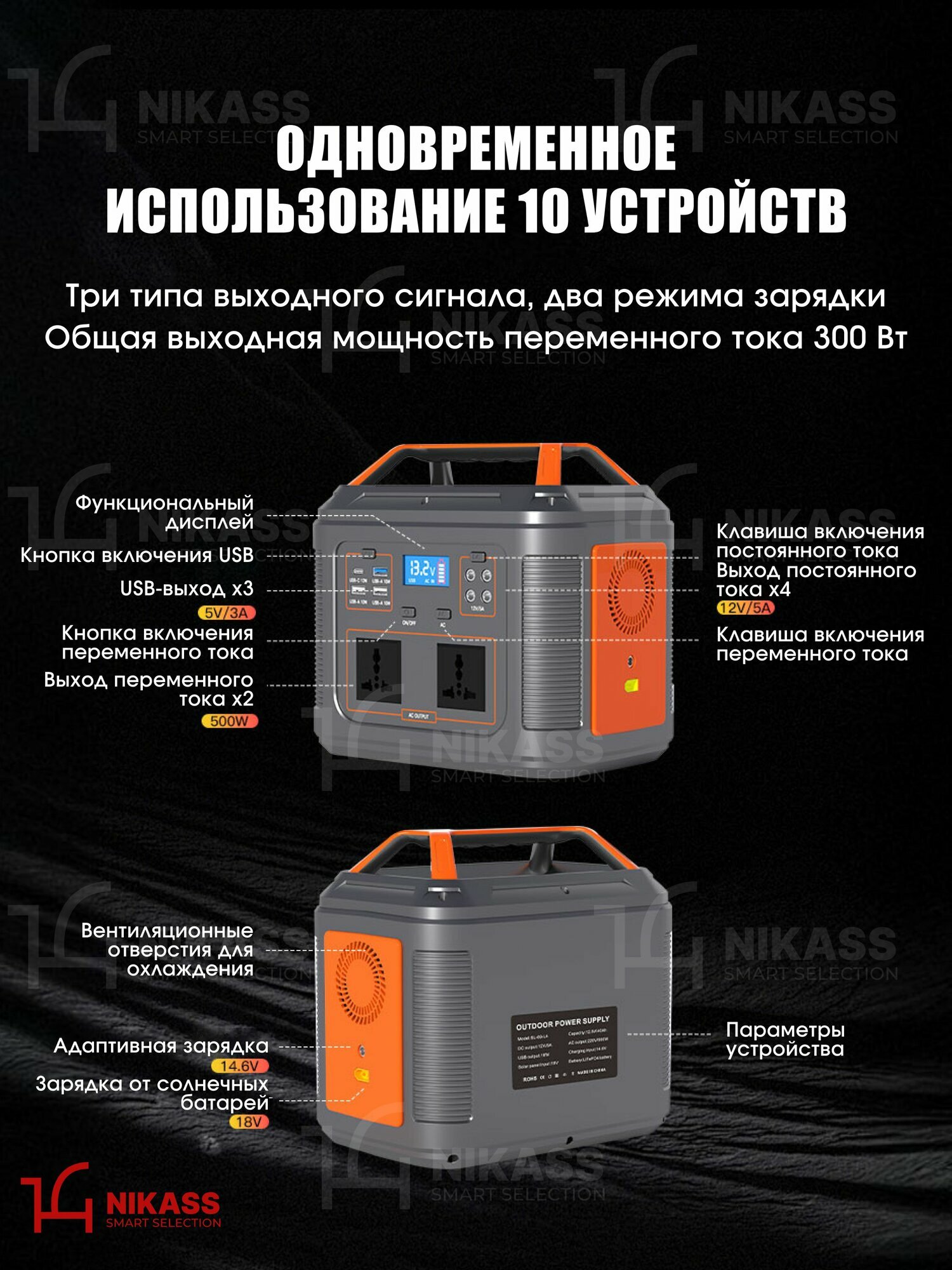 Источник бесперебойного питания с аккумулятором 300W 72000mAh интересное: