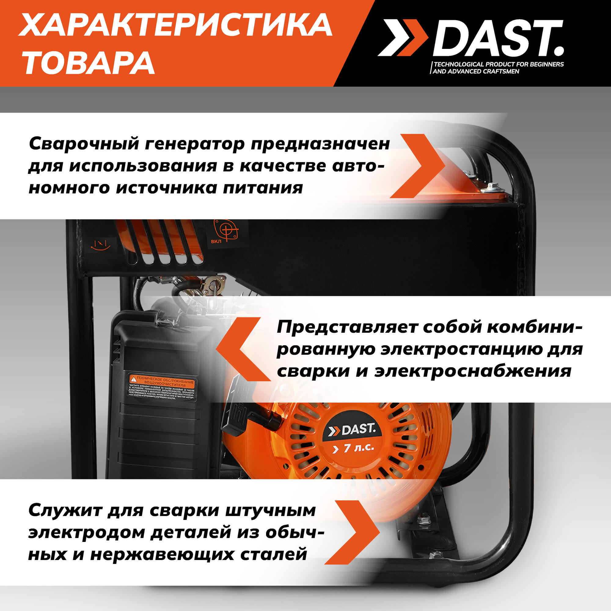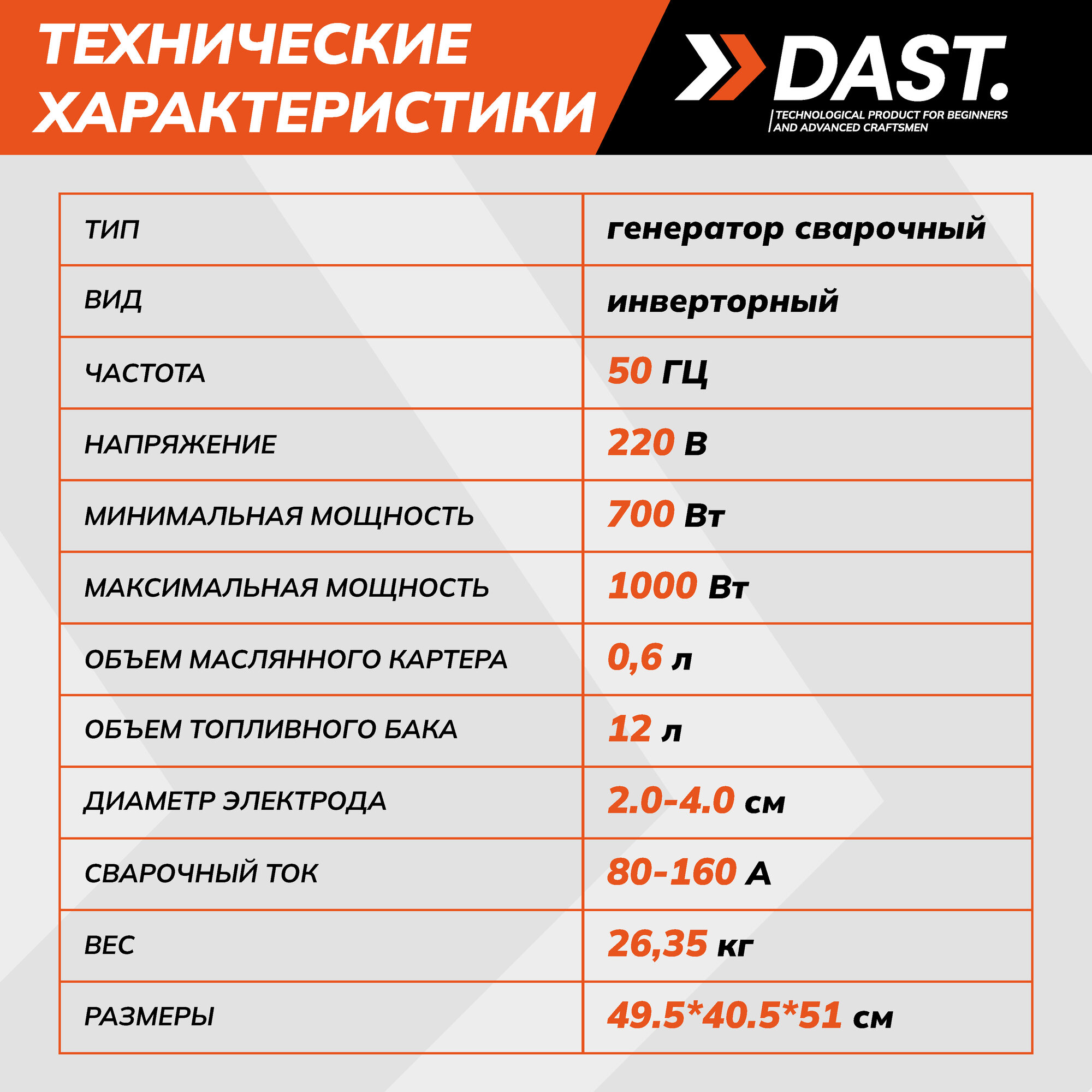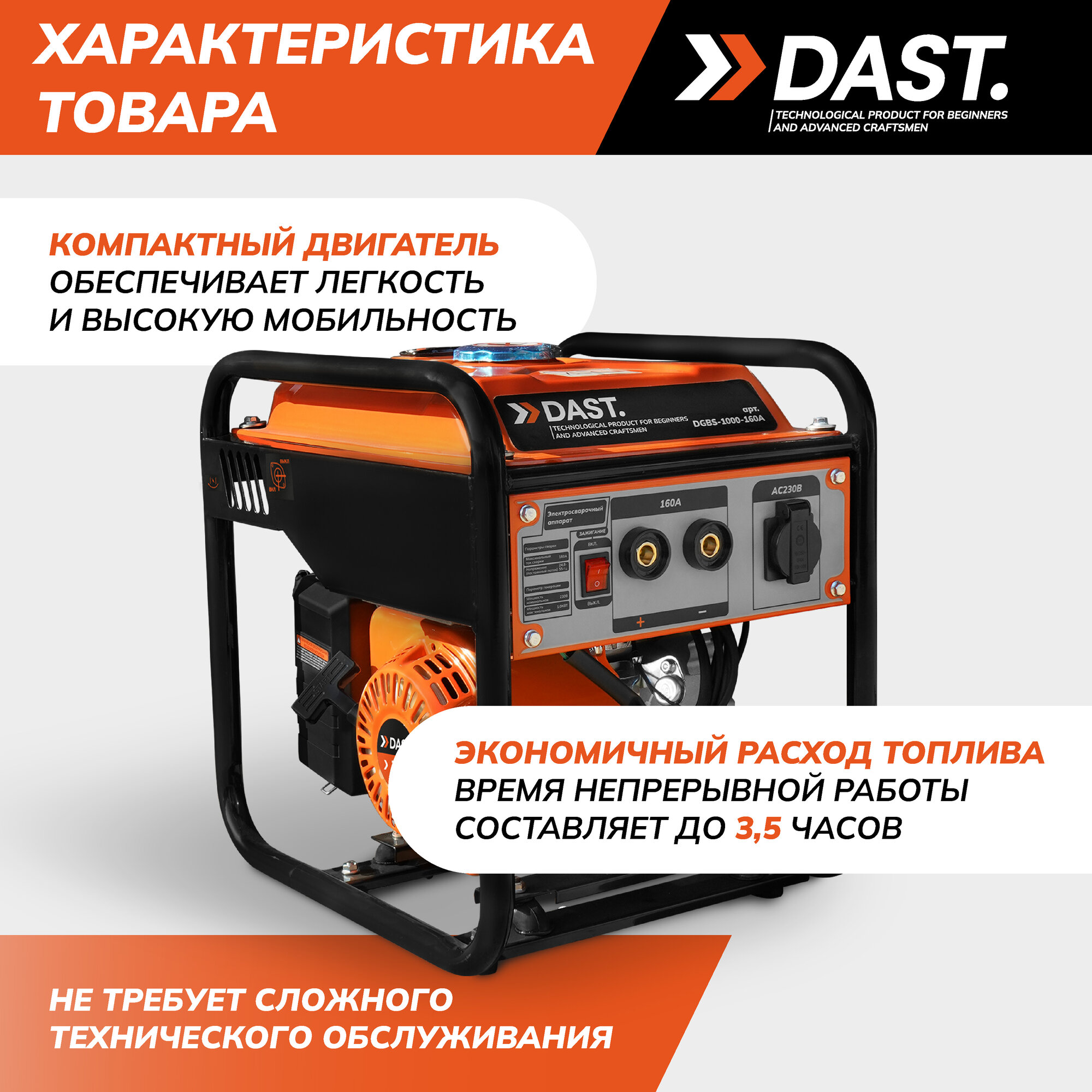 Генератор бензиновый сварочный DAST бак 12 л, электрод 2,0 -4,0, 160А, 1000 Вт интересное: