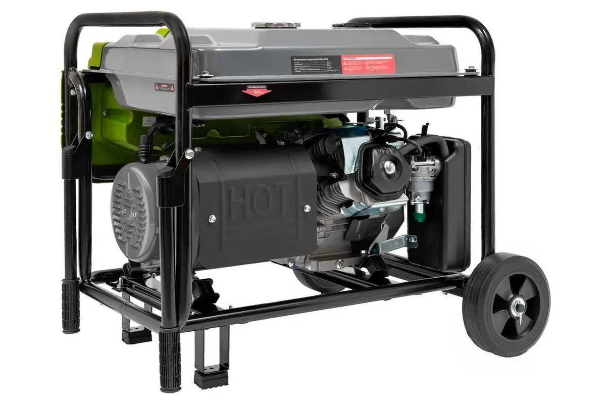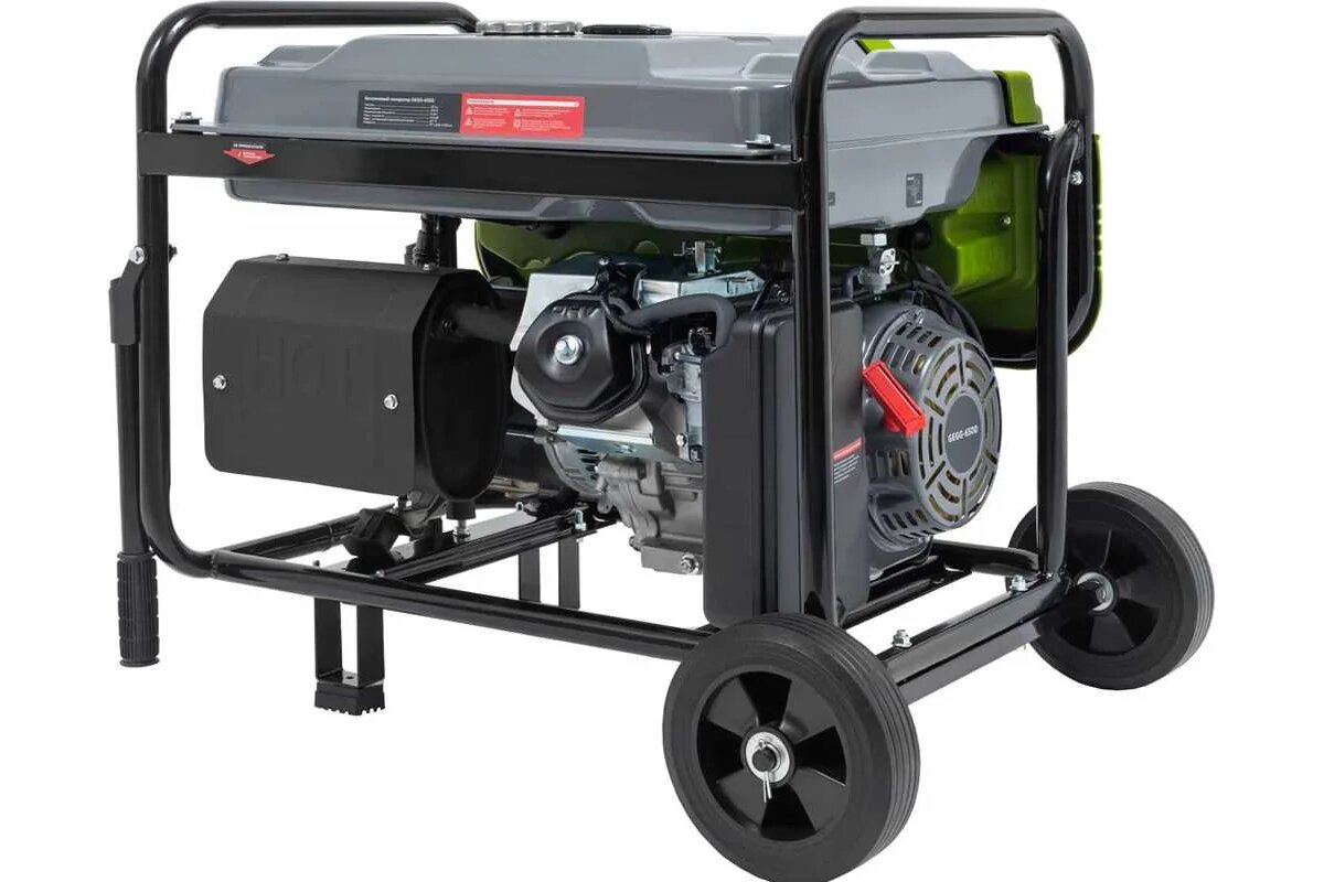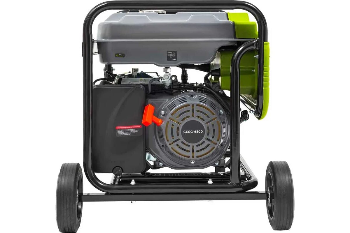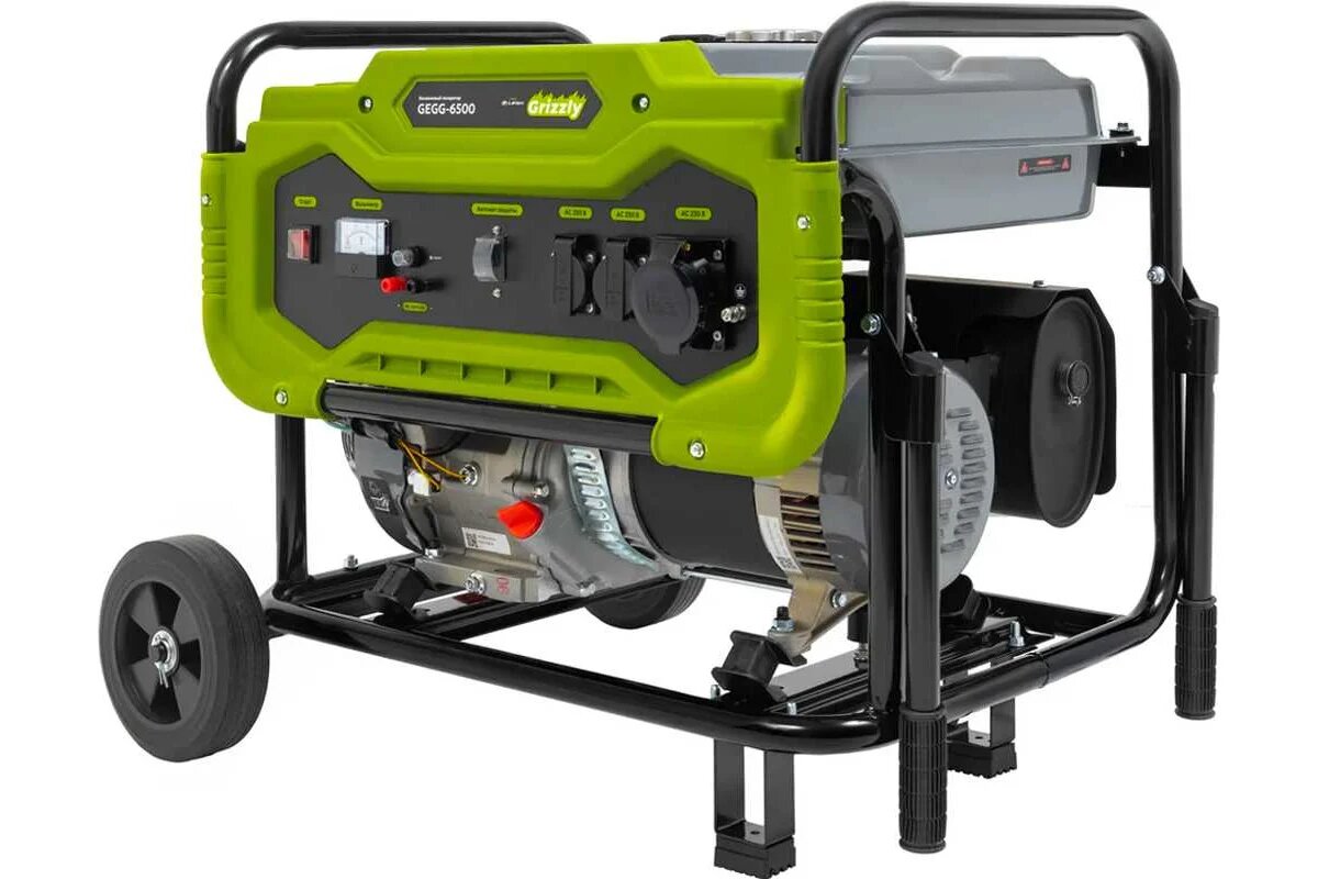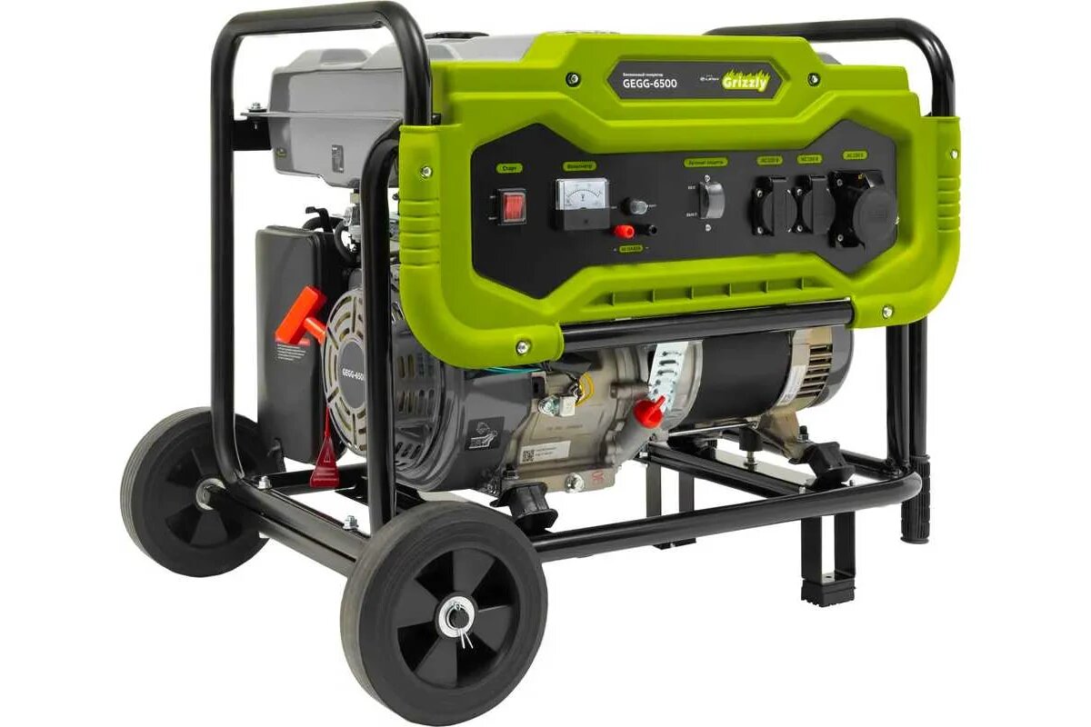 Бензиновый генератор GRIZZLY GEGG-6500, мощность 6500Вт, с колесами интересное:
