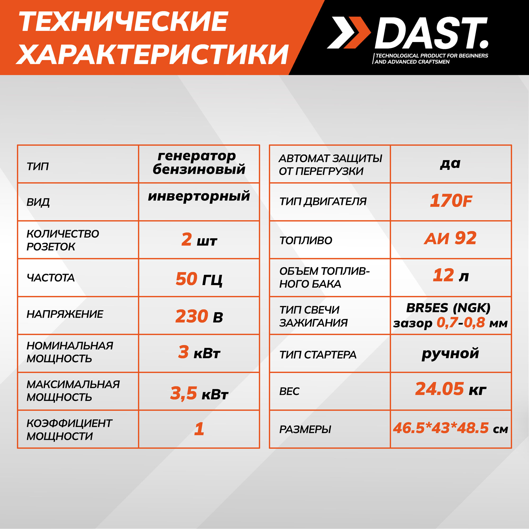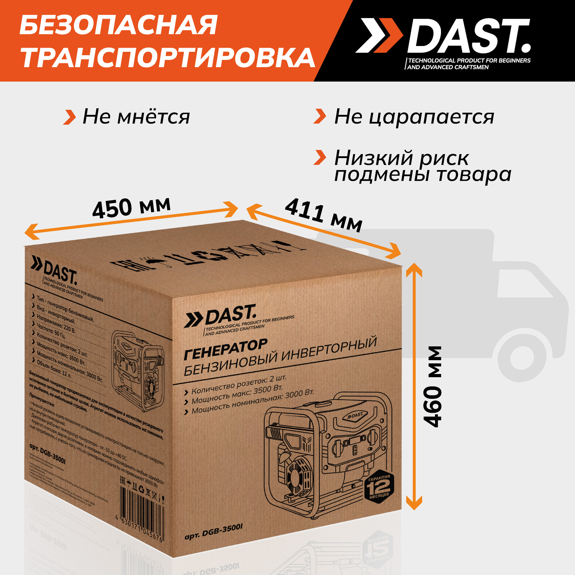 Генератор бензиновый DAST 3-3,5 кВт, 12 л, 4-тактный DGB-3500I интересное: