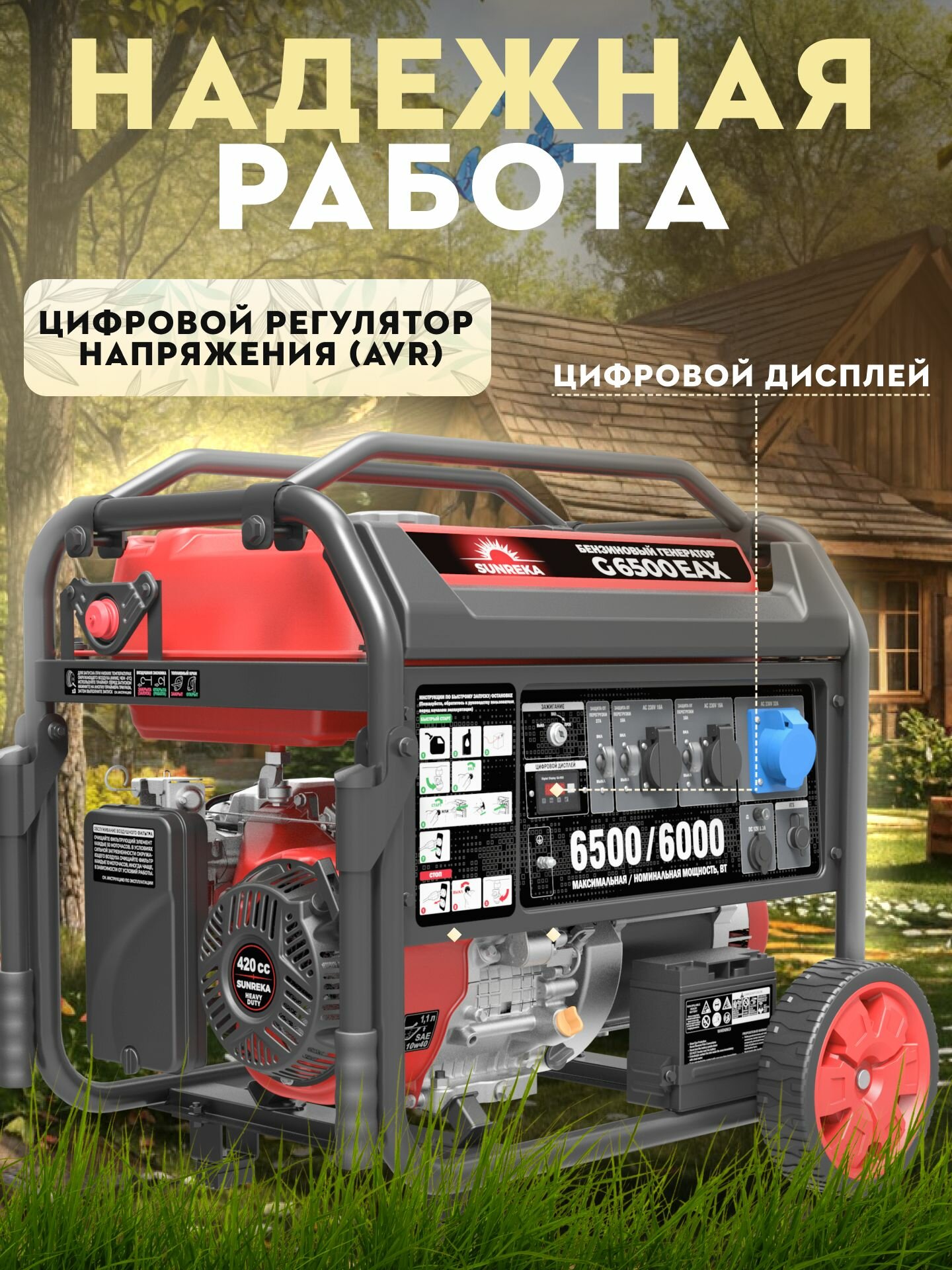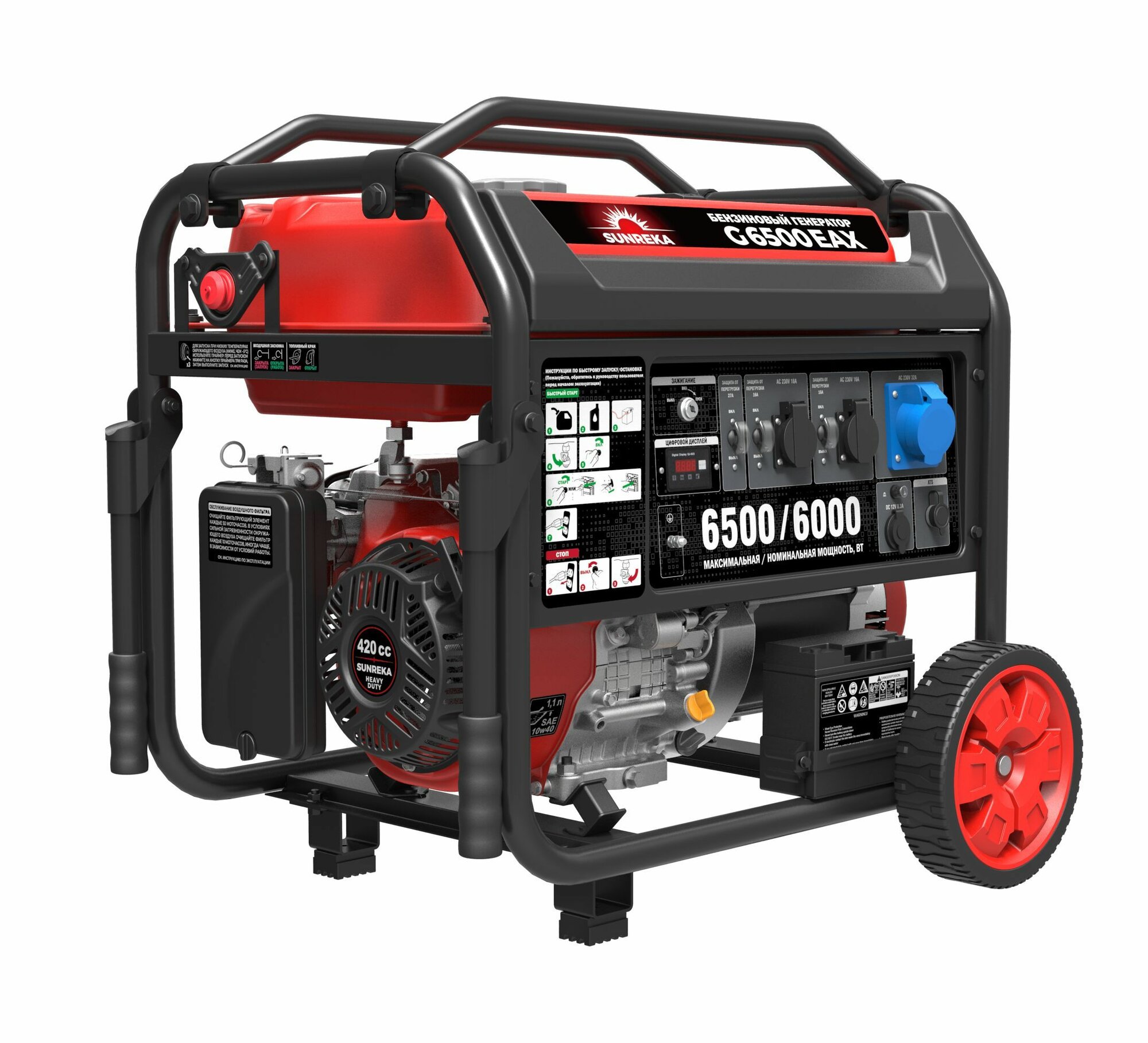 Бензиновый генератор Sunreka™ 5,5 кВт, G5500EAX, 30А, Автозапуск, Высокие пусковые токи, официальная гарантия.