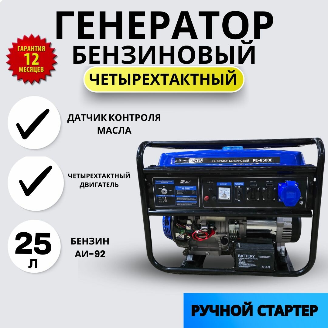 Купить Генератор бензиновый Rucelf PE-6500 ( ручной стартер, 5.5 КВт)