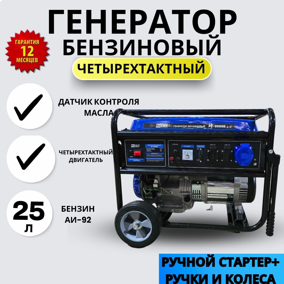 СохранитьГенератор бензиновый Rucelf PE-8000B ( ручки + колеса, ручной стартер, 6 КВт) интересное: