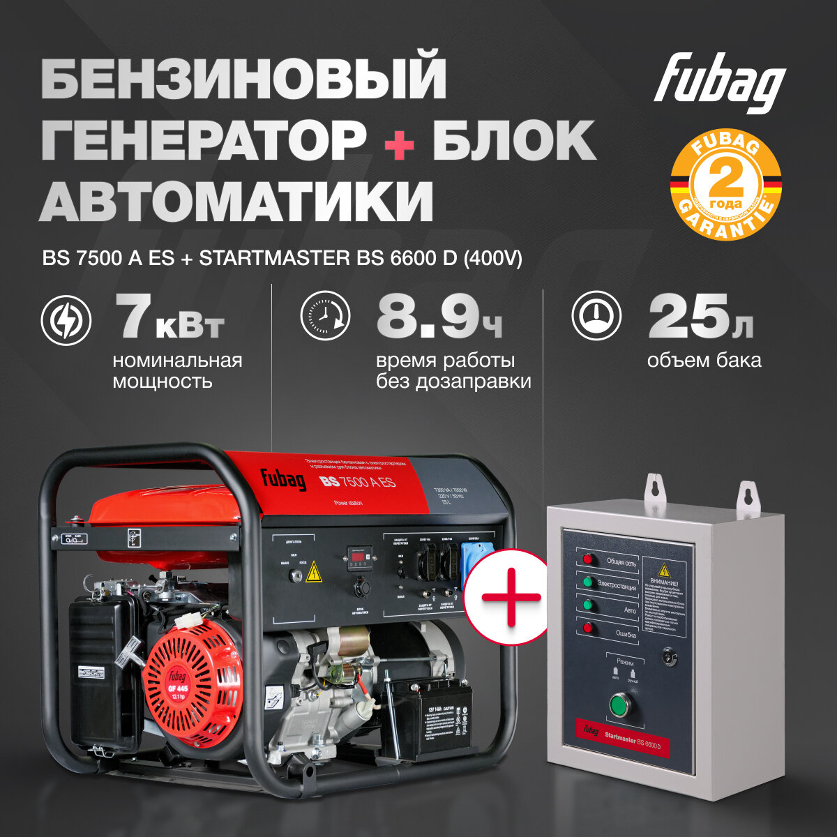 Генератор бензиновый FUBAG BS 7500 A ES, 7 кВт, 220 В + Блок автоматики Startmaster BS 6600 D, трехфазный, 380 В интересное: