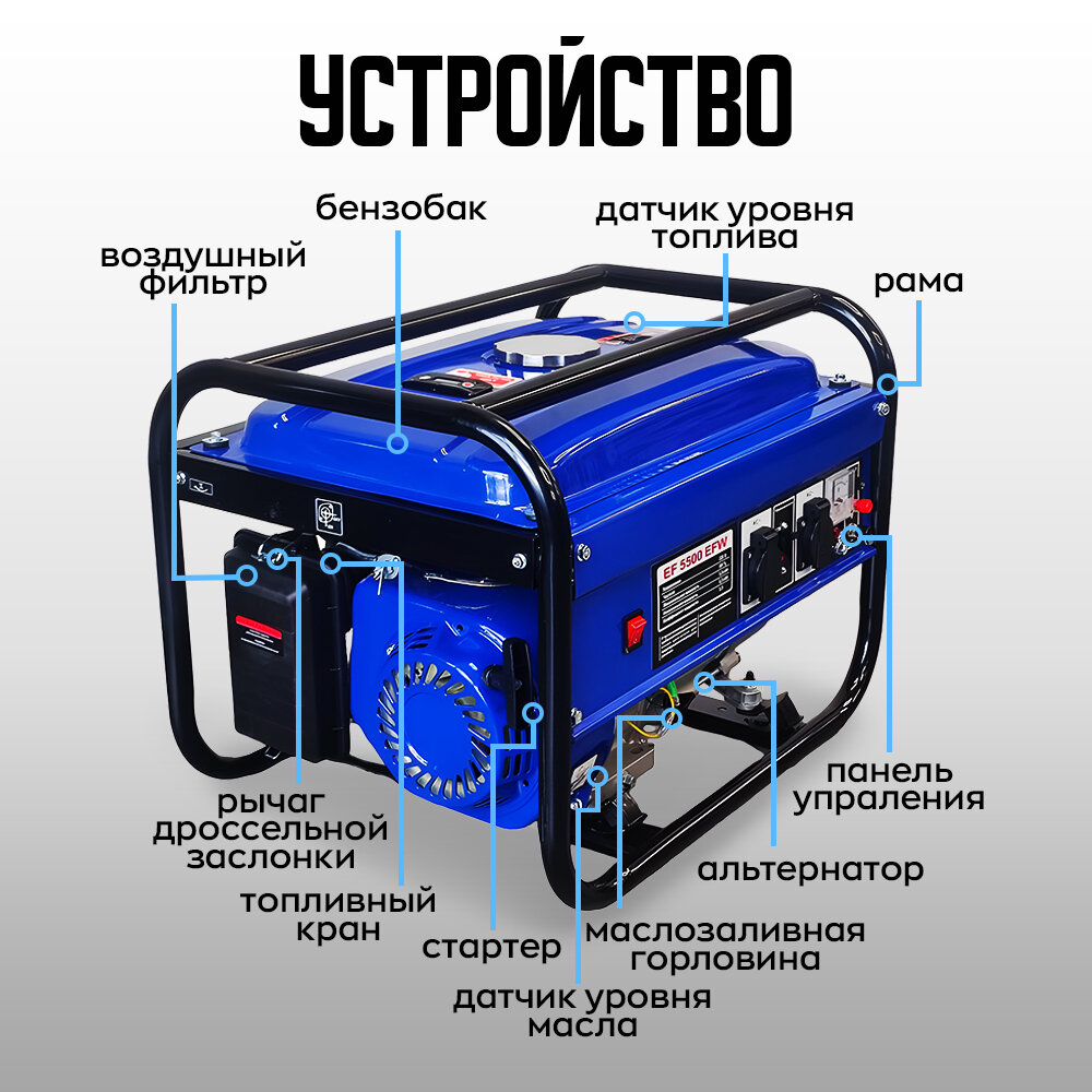 Бензиновый генератор Eliprun, 3.5кВт, ручной запуск, глушитель, защита от перегрузок интересное:
