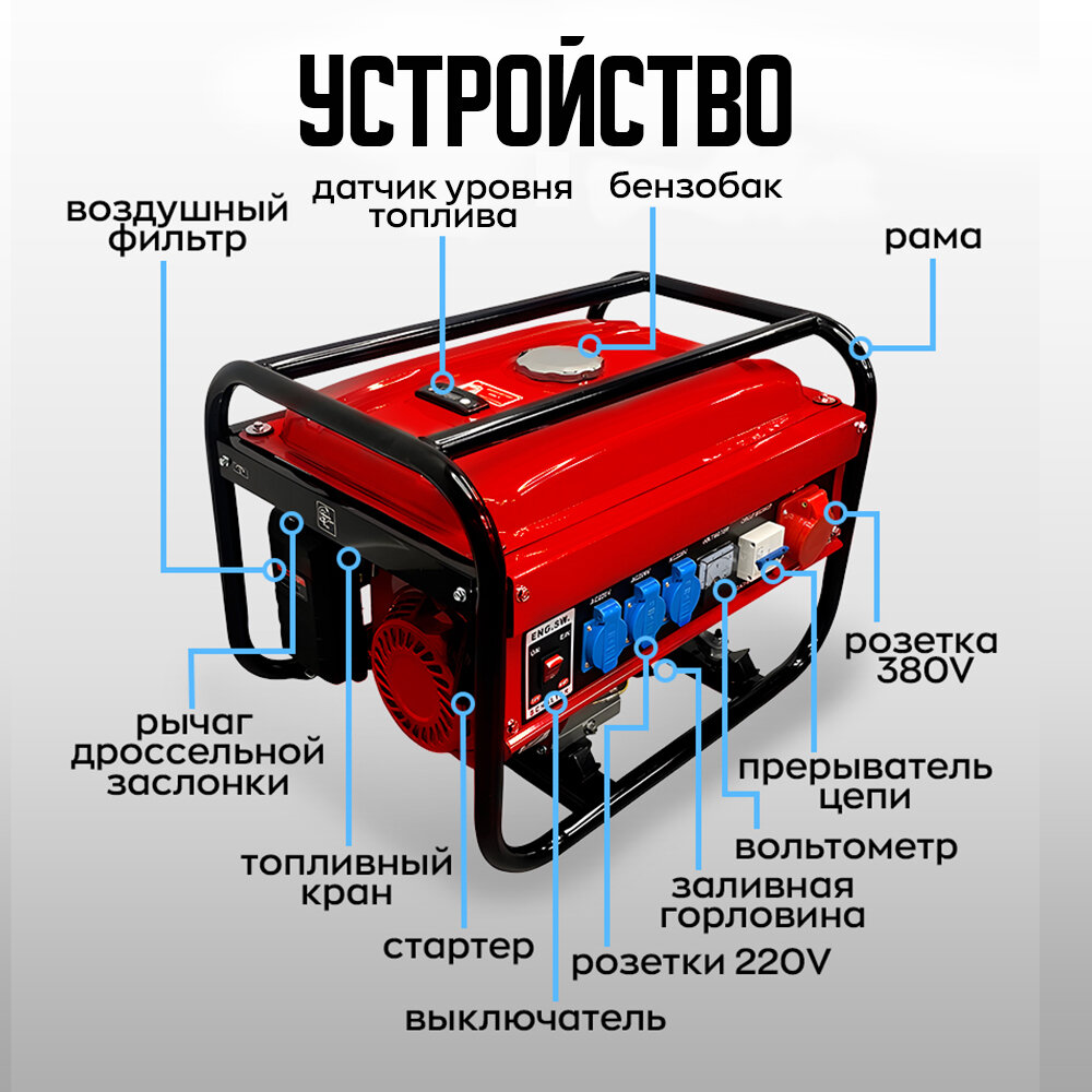 Генератор Eliprun, 3.5кВт, 2 розетки 220V, время работы 8 ч, уровень шума 65дБ интересное: