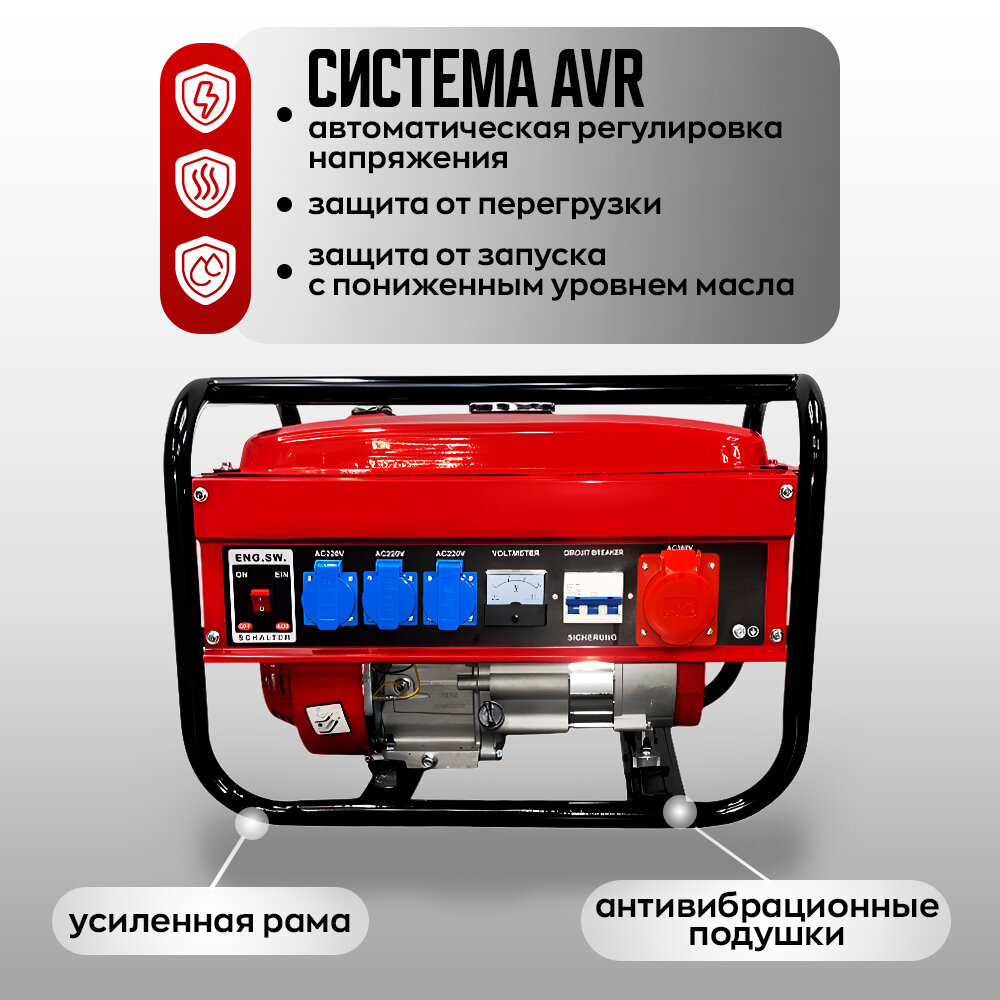 Бензиновый генератор Eliprun, 3.5кВт, ручной запуск, глушитель, защита от перегрузок