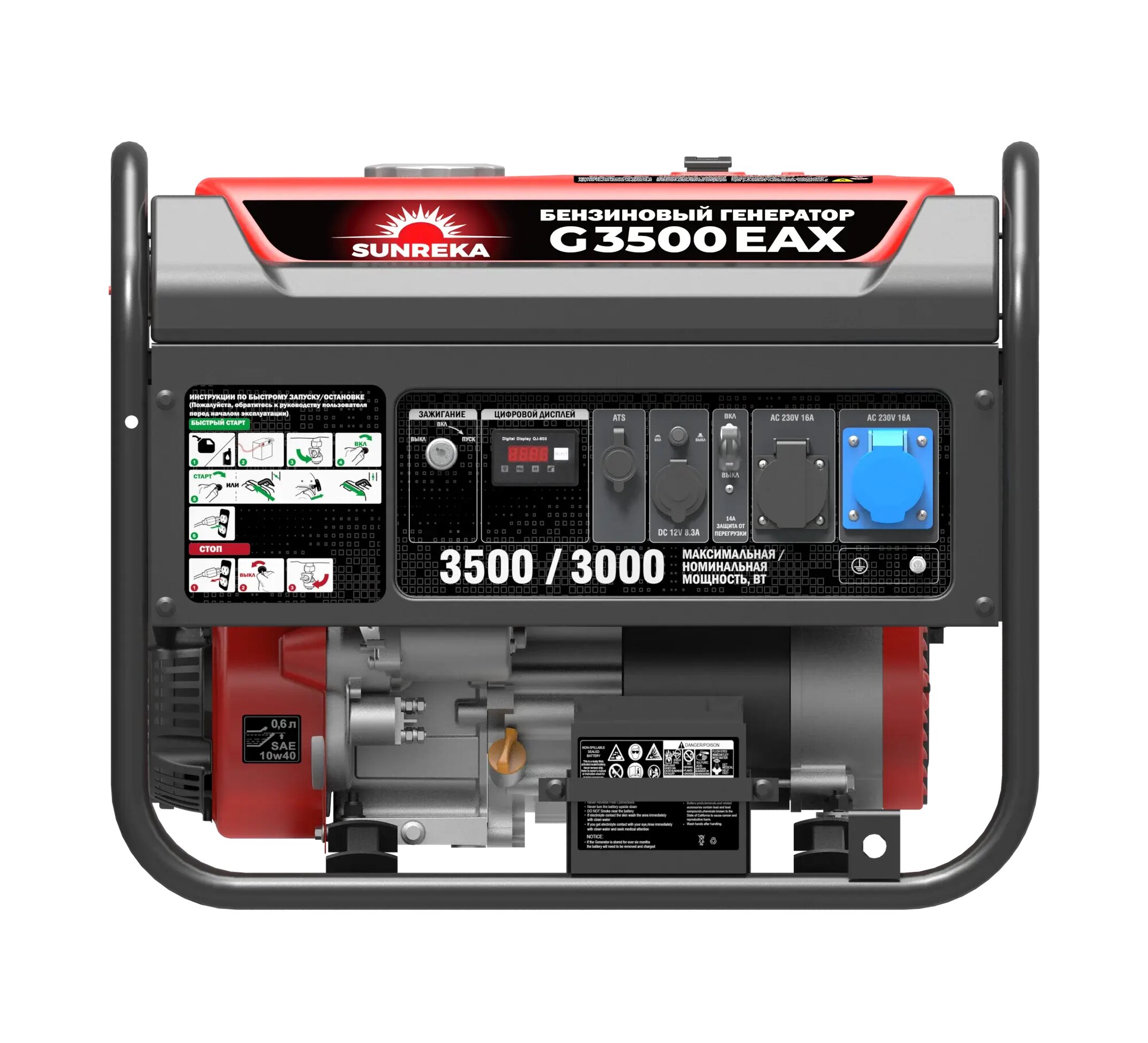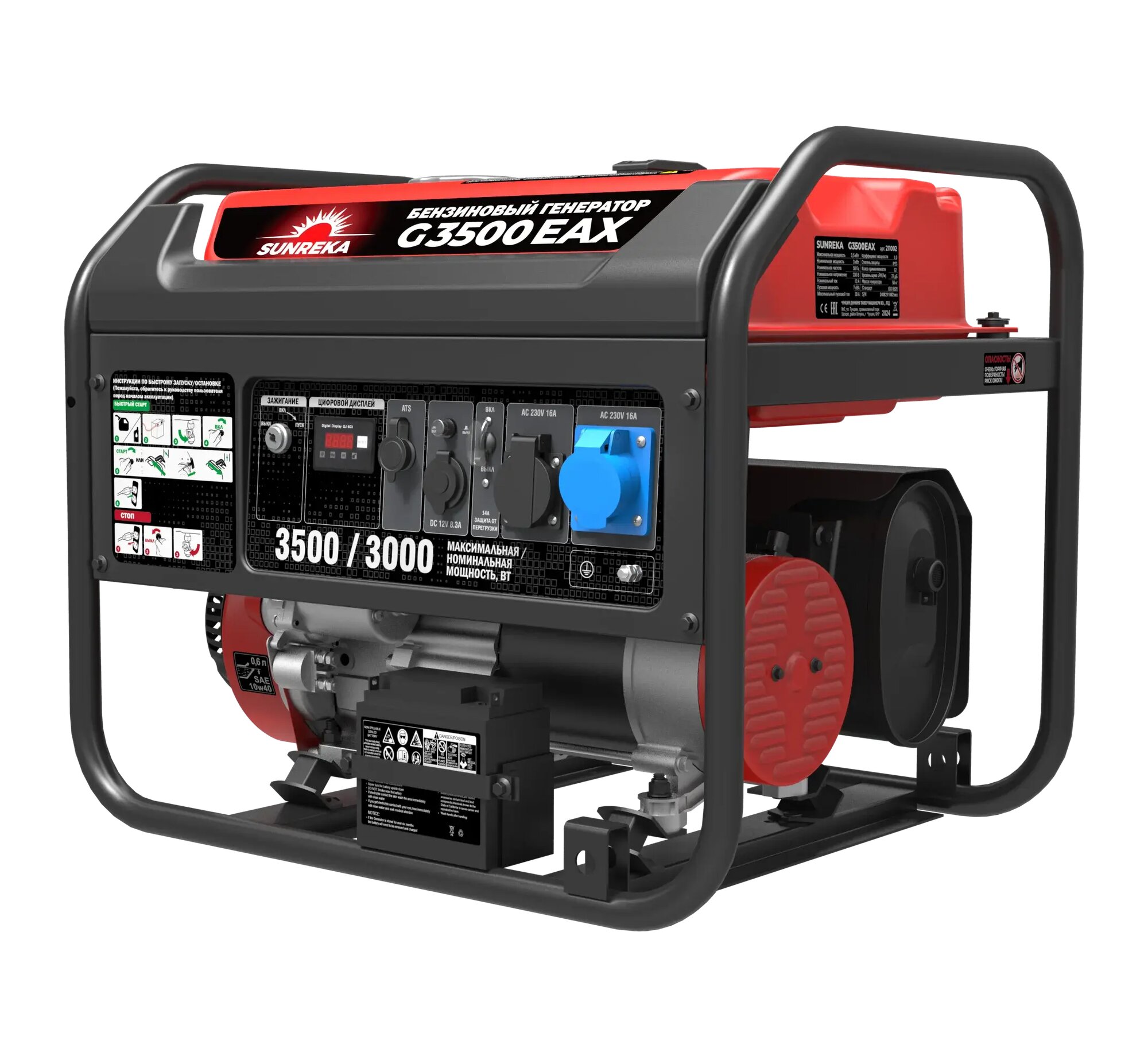 Бензиновый генератор Sunreka™ 3,5 кВт, G3500EAX, 30А, Автозапуск, Высокие пусковые токи, официальная гарантия. интересное: