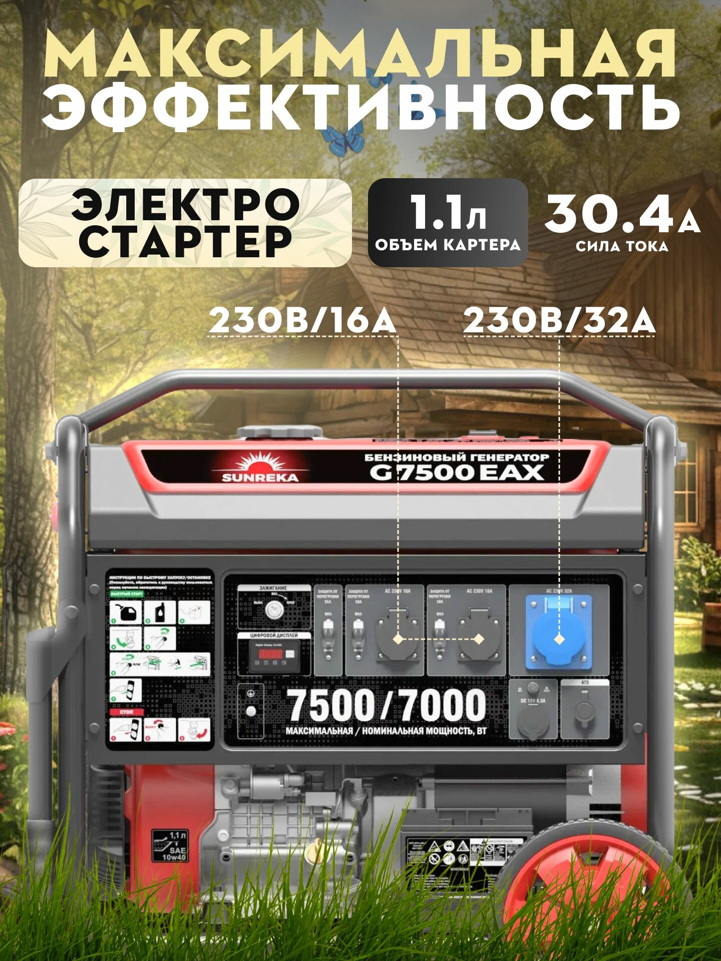 Генератор бензиновый 7.5 kWt SUNREKA G7500EAX электростартер интересное:
