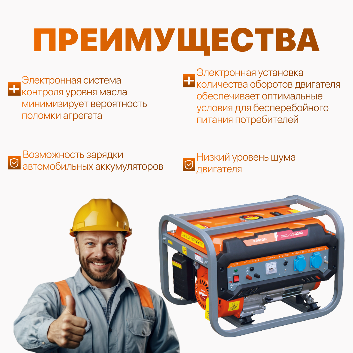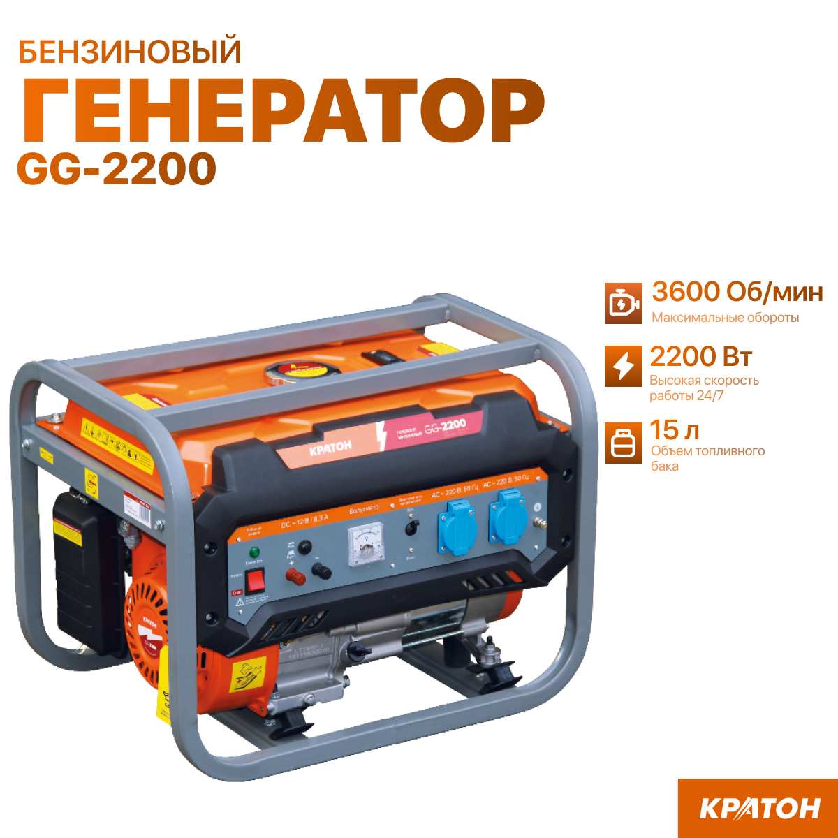 Генератор бензиновый Кратон GG-2200, 2,2 кВт, однофазный, ручной стратер интересное:
