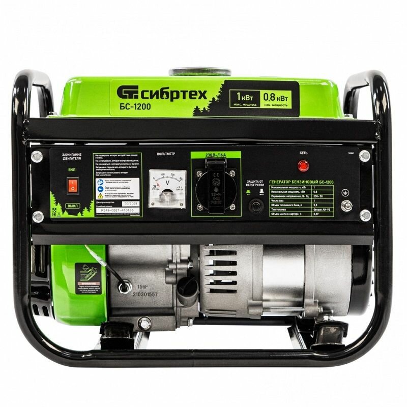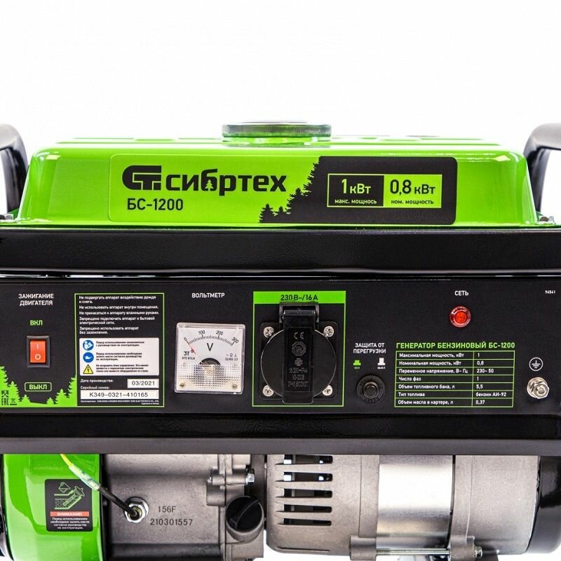 Бензиновый генератор СИБРТЕХ БС-1200, (1 кВт, бензобак 5.5 л, ручной стартер) электростанция, мини генератор интересное: