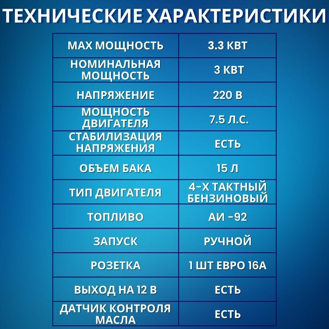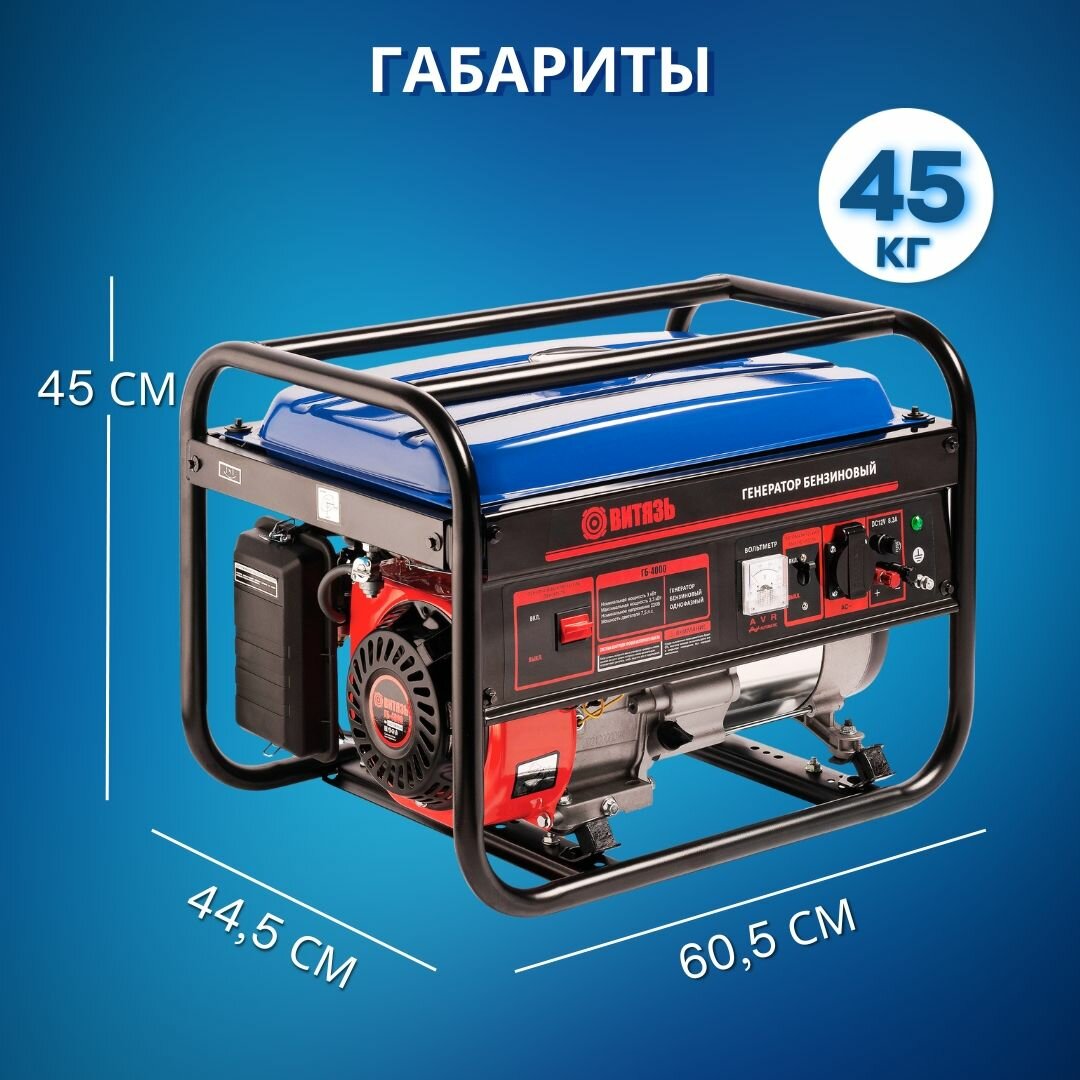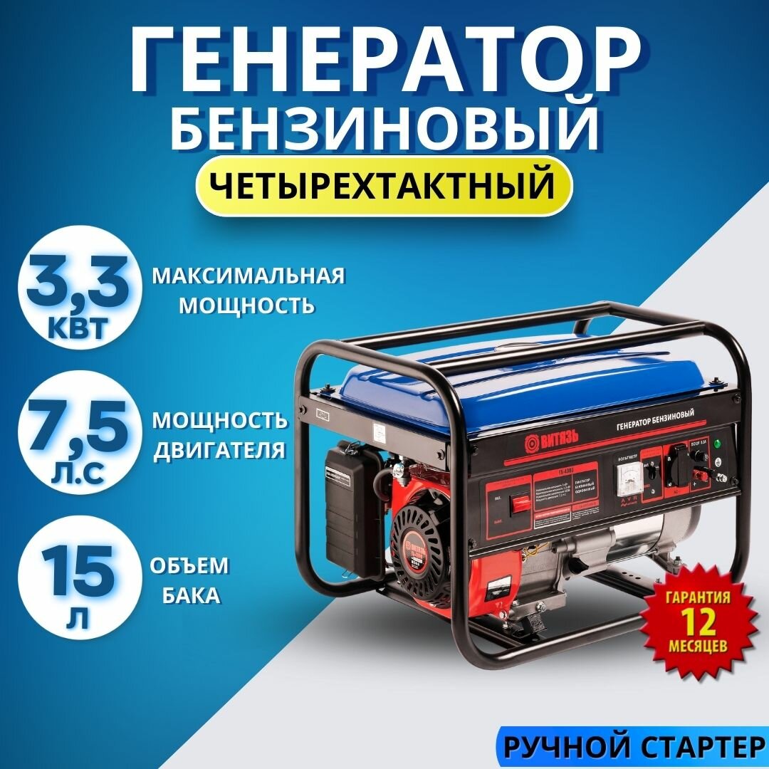 Генератор бензиновый Витязь ГБ-4000 (3,3 кВт, 7,5 л. с, 220 В, ручной стартер) / генератор бензиновый электрический 3 кВт интересное: