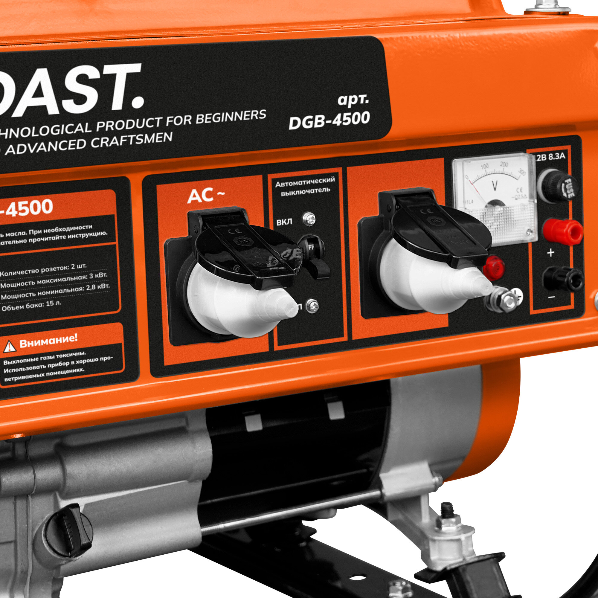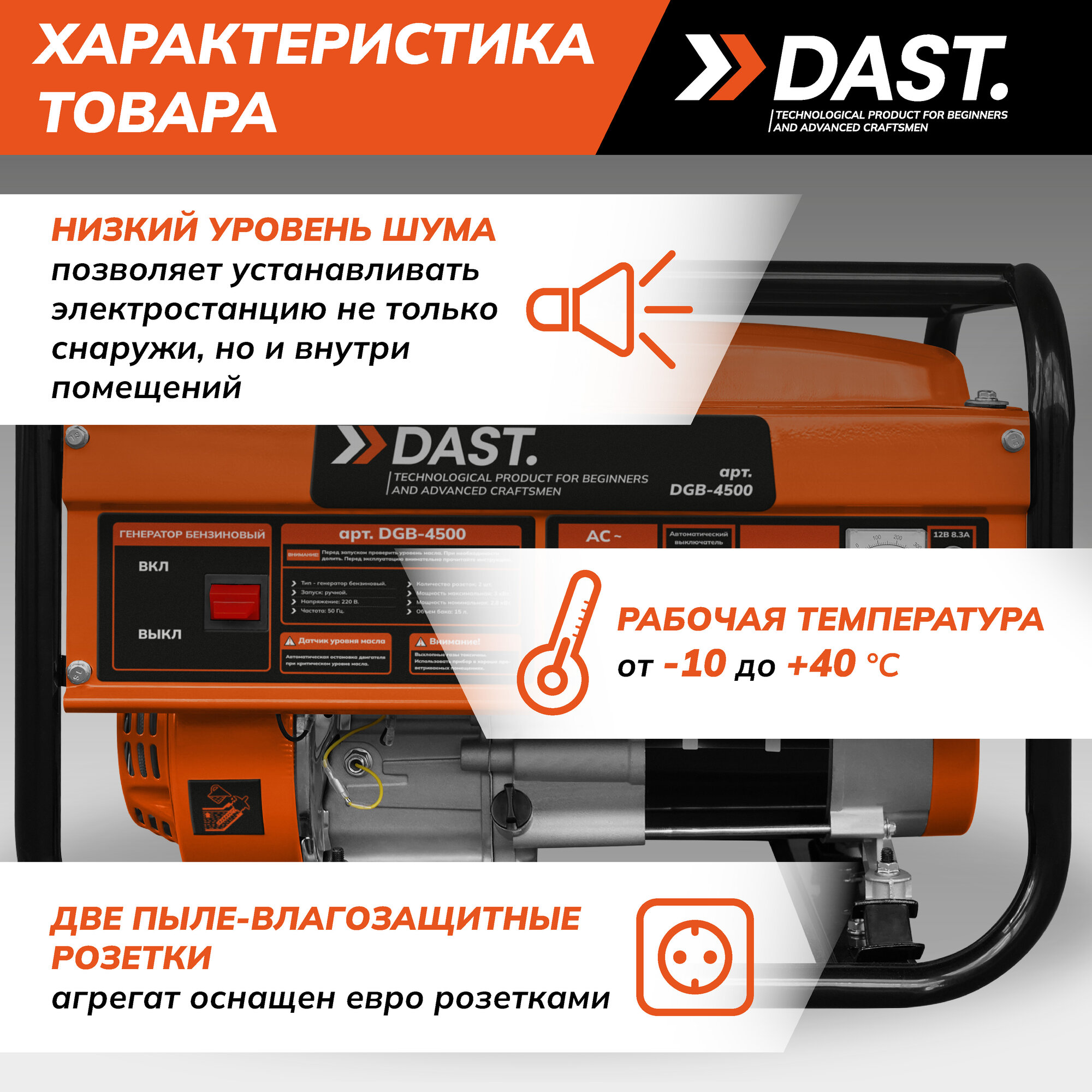 Генератор бензиновый DAST 2.8-3 кВт, 15 л, 2 розетки, клеммы, 4-тактный DGB-4500 интересное: