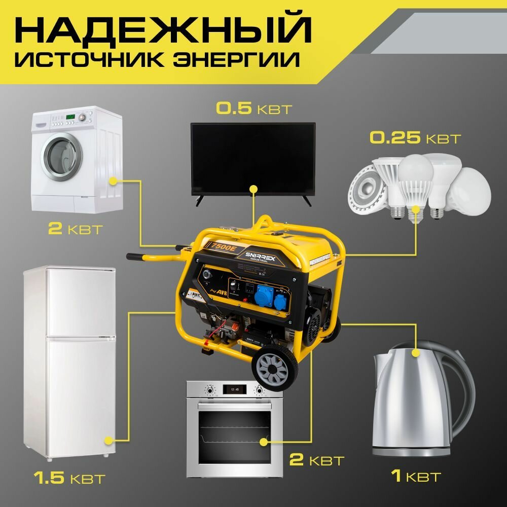 Бензиновый генератор 7.5 кВт SNIRREX 7500E интересное: