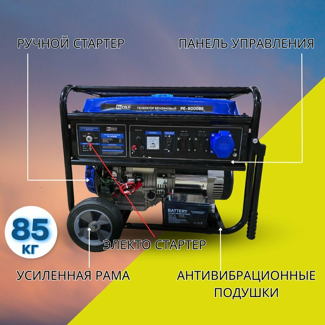 Генератор бензиновый Rucelf PE-8000BE ( ручки + колеса, электростартер, 6 КВт) интересное: