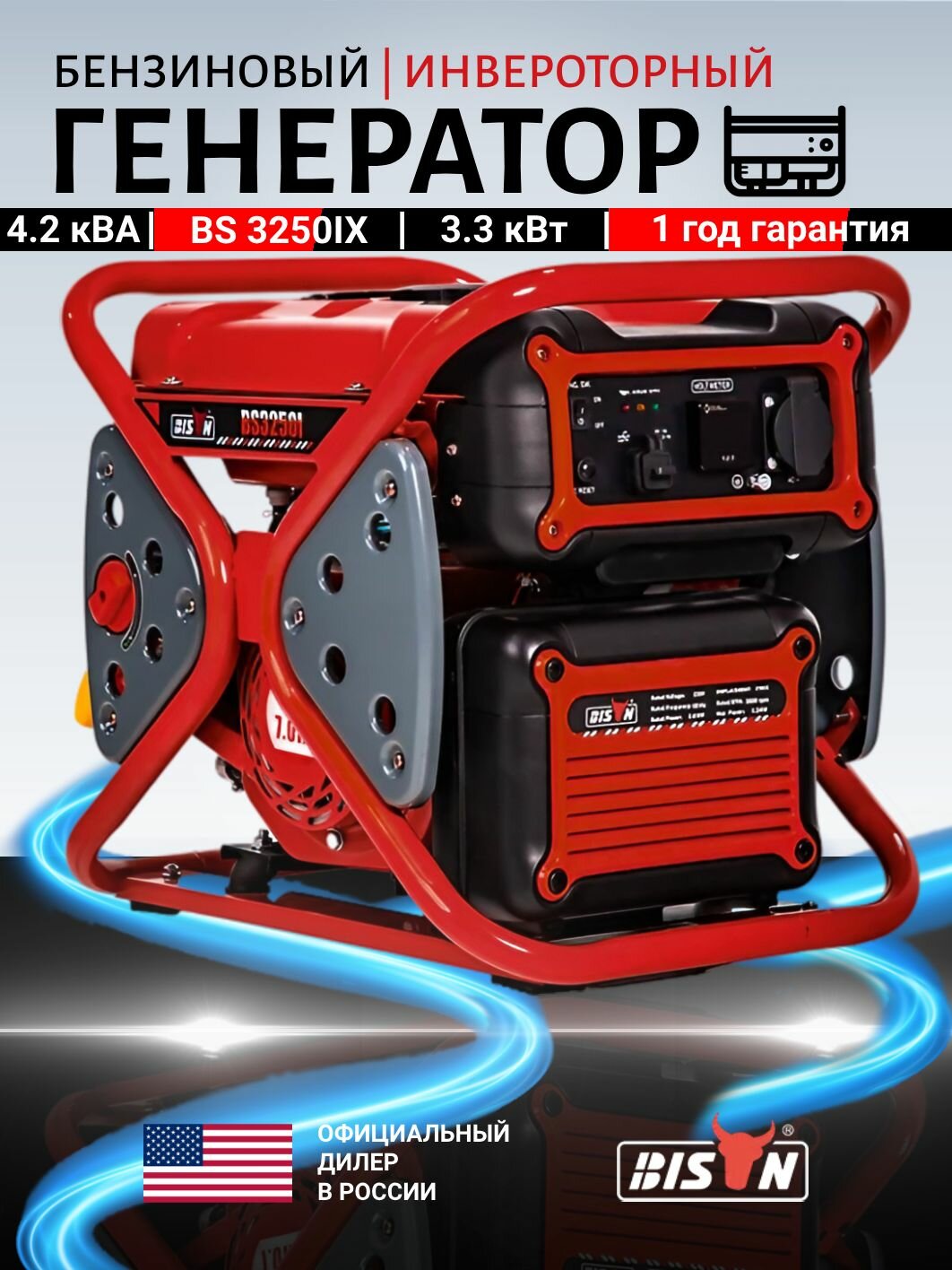 Купить Инверторный бензогенератор BISON GASOLINE BS3250IX, 3.3кВт, 1 фаза