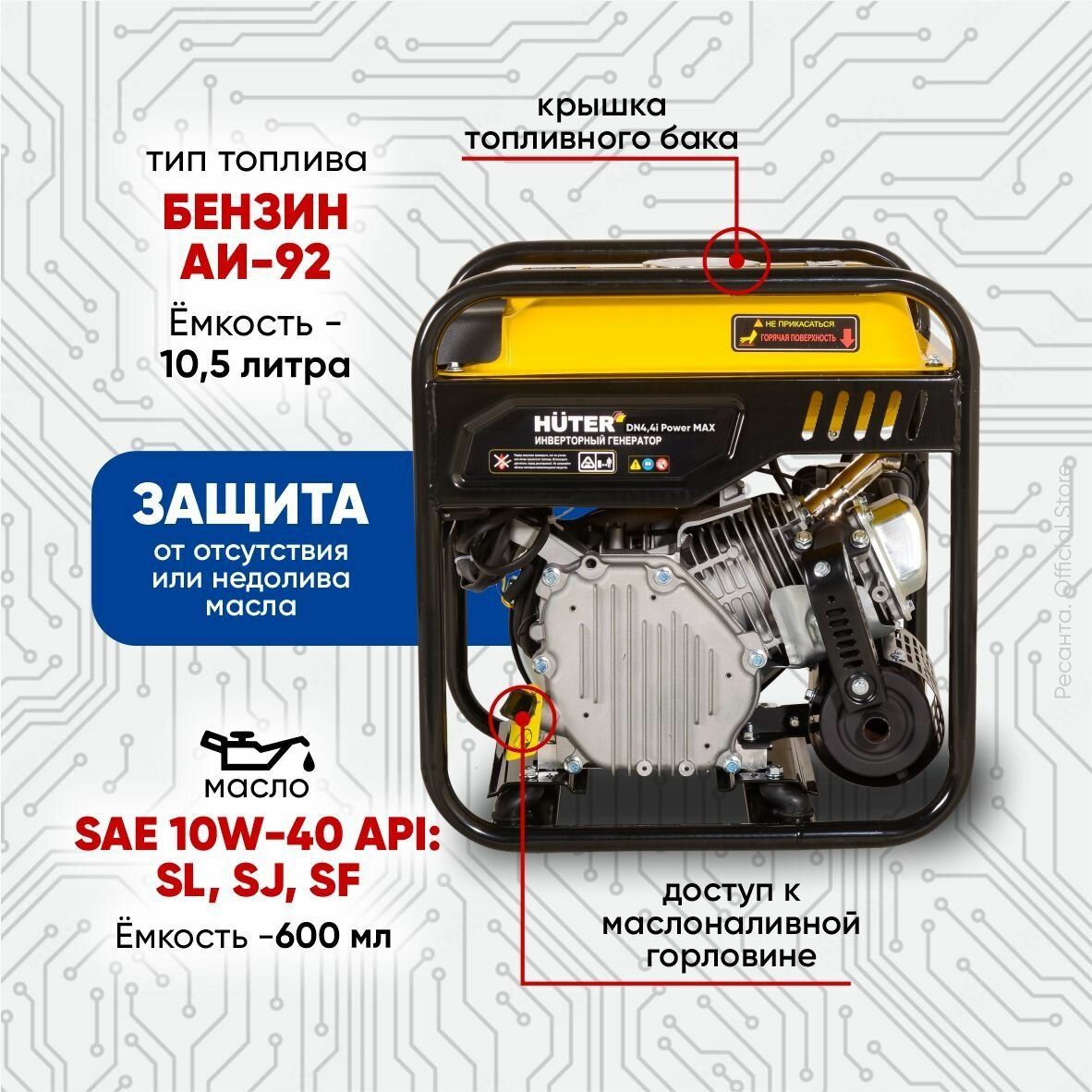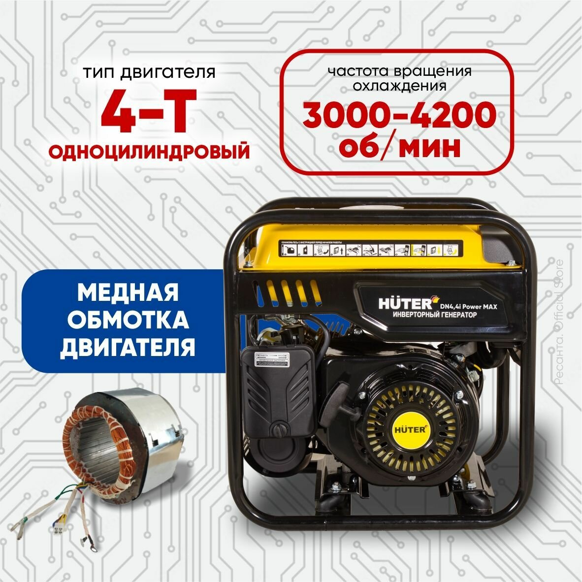 Инверторный генератор Huter DN4,4i Power MAX, 3800-4000 Вт, 7 л интересное: