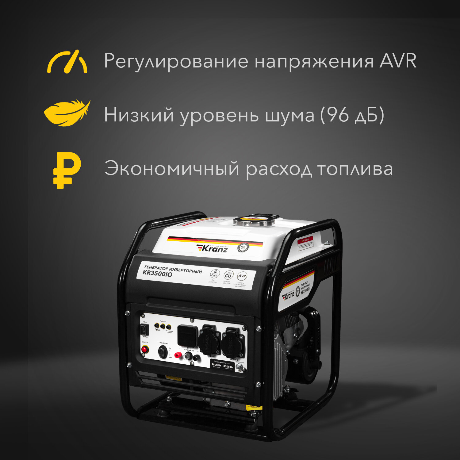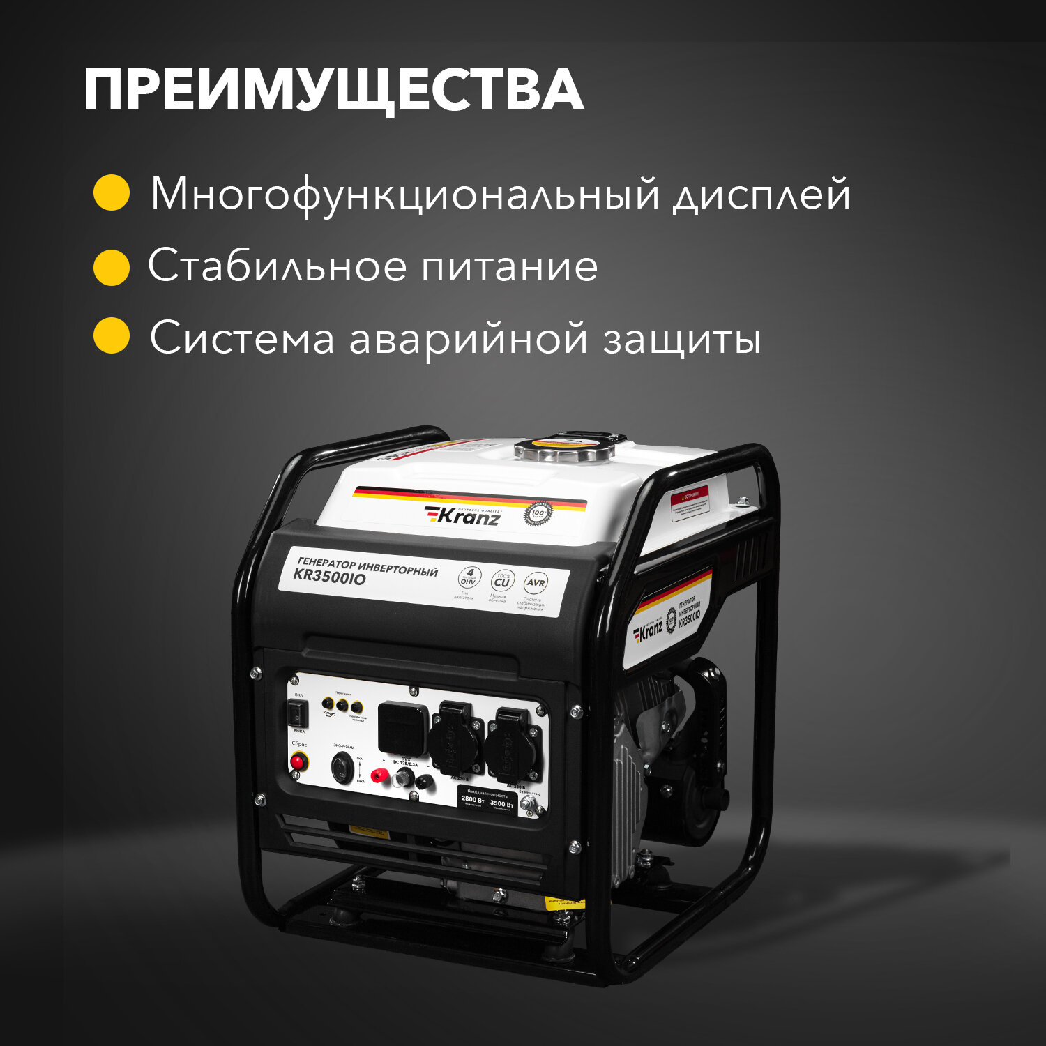 Генератор инверторный KR3500IO 3.5кВт 5л открытый корпус KRANZ интересное: