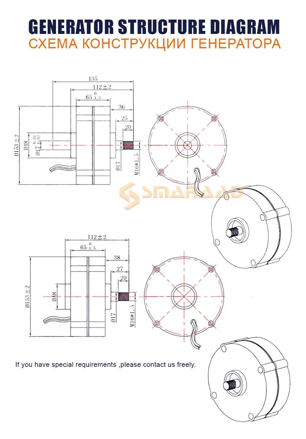 Генератор SMARAAD 500 Вт 12В/24В 3 фазы, With Base, 24 В, 500W интересное: