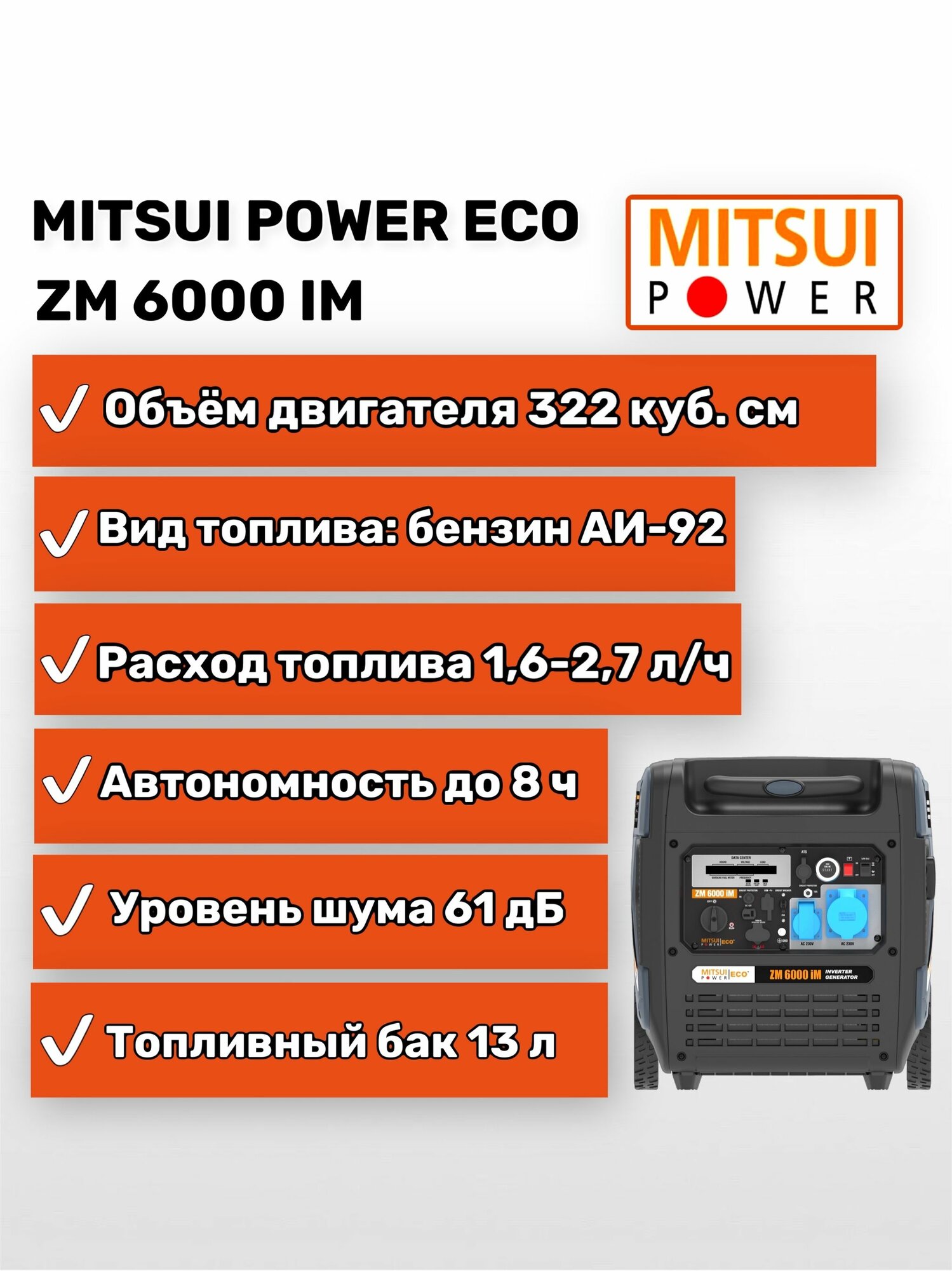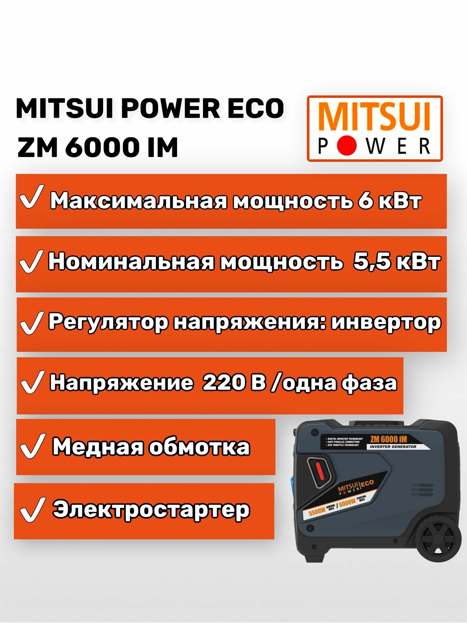 Купить Генератор инверторный Mitsui Power Eco ZM 6000 iM бензиновый (6 кВт)