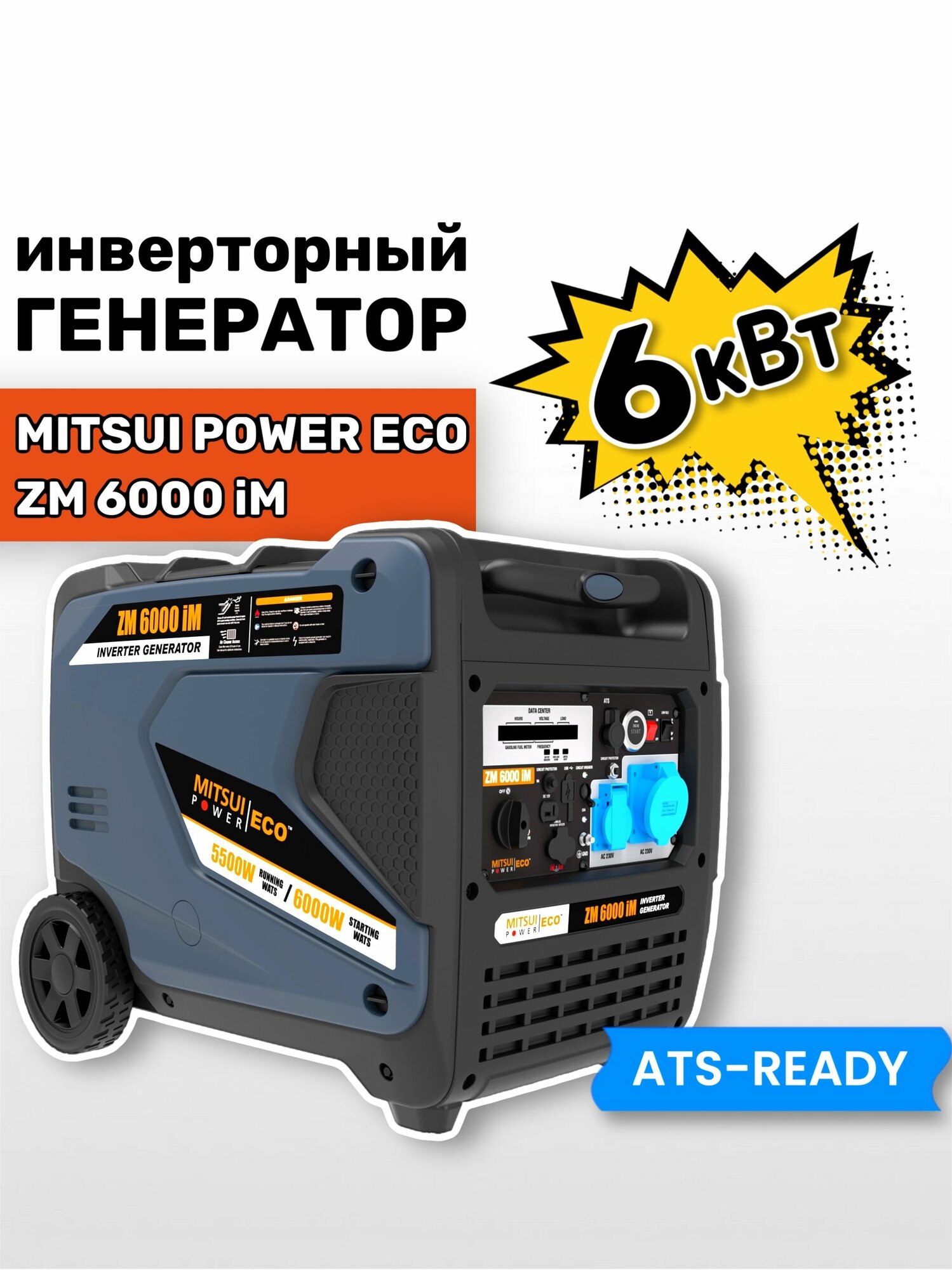 Инверторный бензиновый генератор Mitsui Power Eco ZM 8000 iM (8 кВт, 220 В, одна фаза, ATS READY, электростартер)