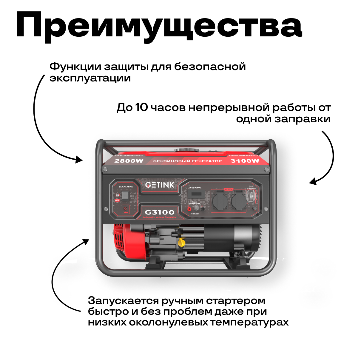 Генератор бензиновый GETINK G3100 (3,1кВт,1-Ф, ручной стартер) интересное:
