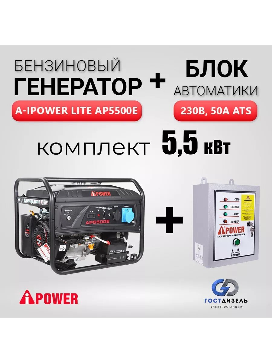 Генератор бензиновый Lite AP5500E (5,5 кВт) + Блок АВР 230В; запуск Ручной/ Электро интересное: