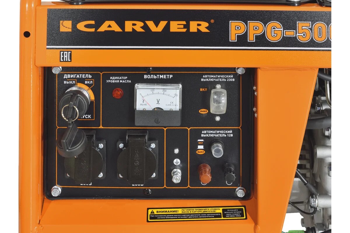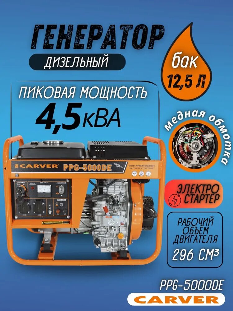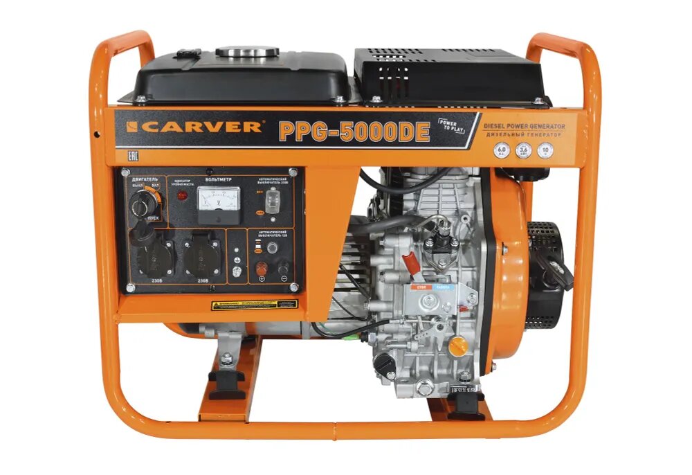 Купить Генератор Carver PPG 5000 DE, дизельный, воздушная система охлаждения, 1 фаза, 2 розетки 220В