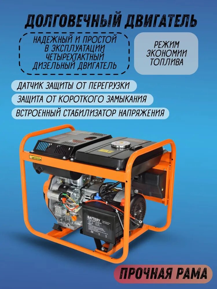 Генератор Carver PPG 5000 DE, дизельный, воздушная система охлаждения, 1 фаза, 2 розетки 220В интересное: