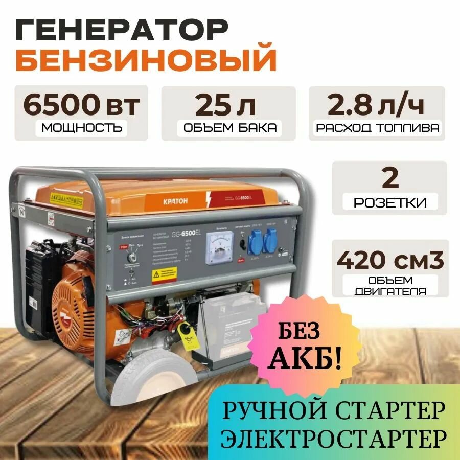 Генератор бензиновый Кратон GG-6500EL, 6,5 кВт, однофазный, электростартер интересное: