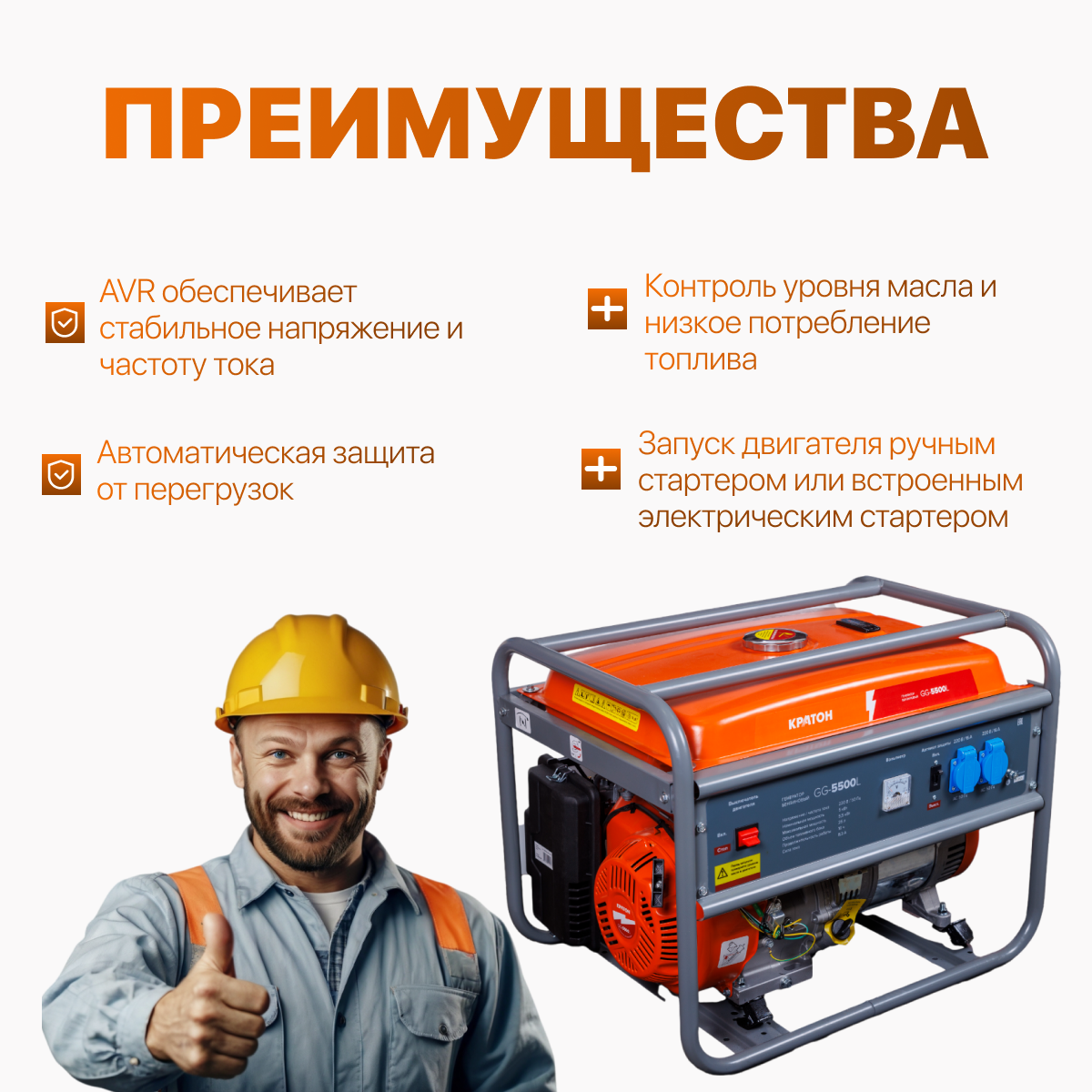 Генератор бензиновый Кратон GG-5500L, 5,5 кВт, однофазный, ручной пуск, 2 розетки интересное: