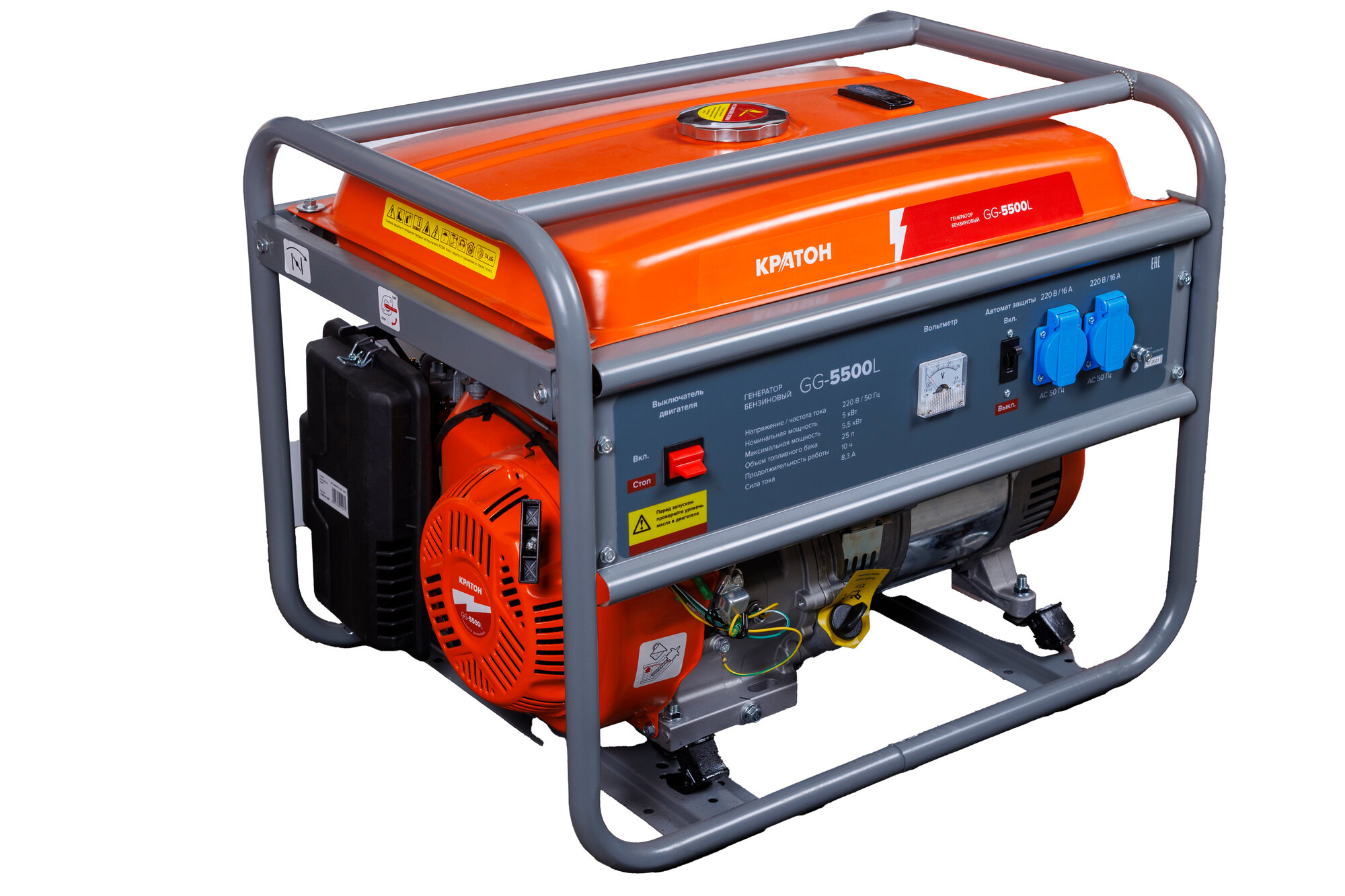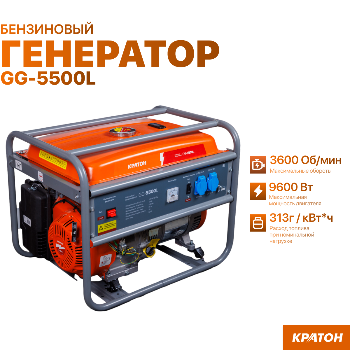 Купить Генератор бензиновый Кратон GG-5500L, 5,5 кВт, однофазный, ручной пуск, 2 розетки